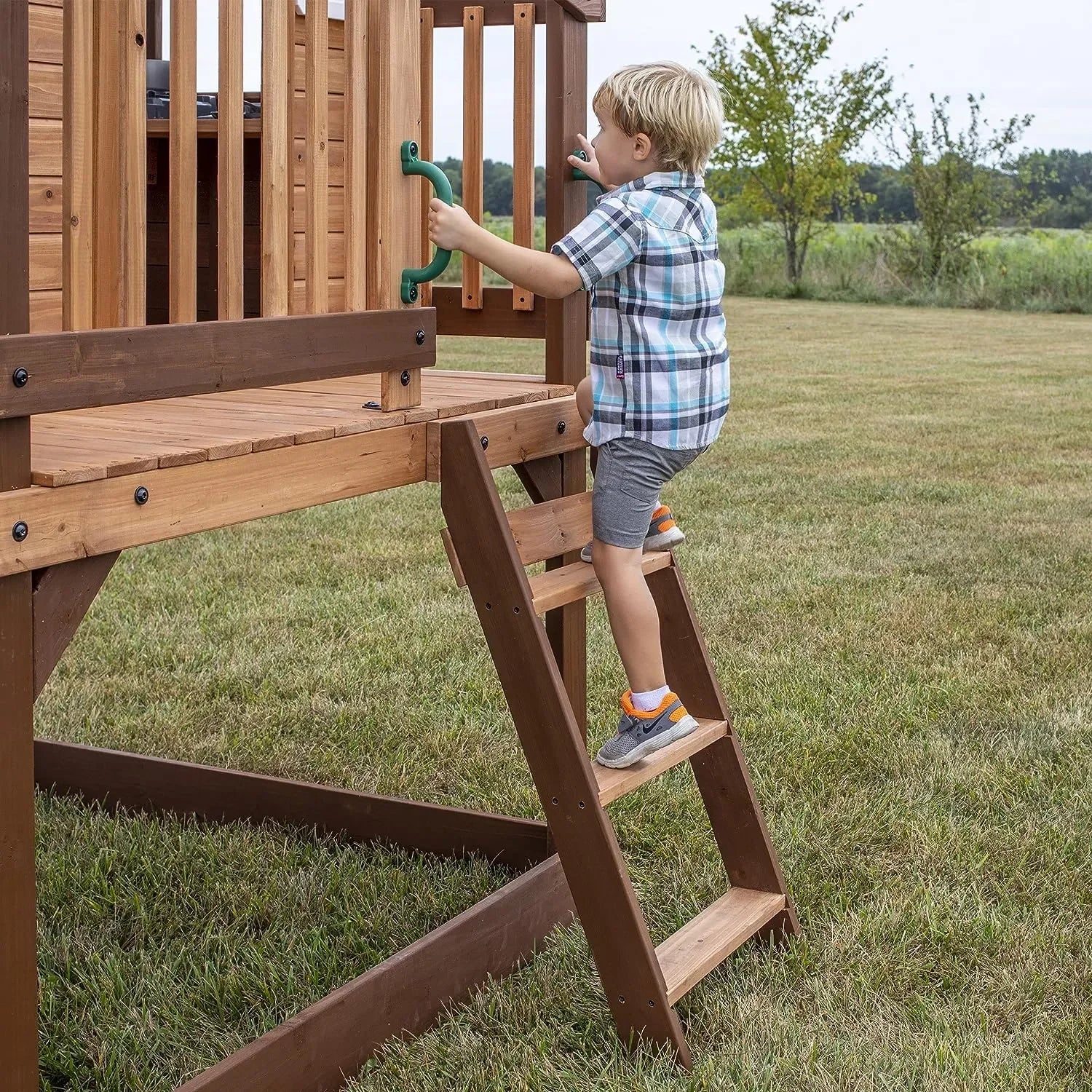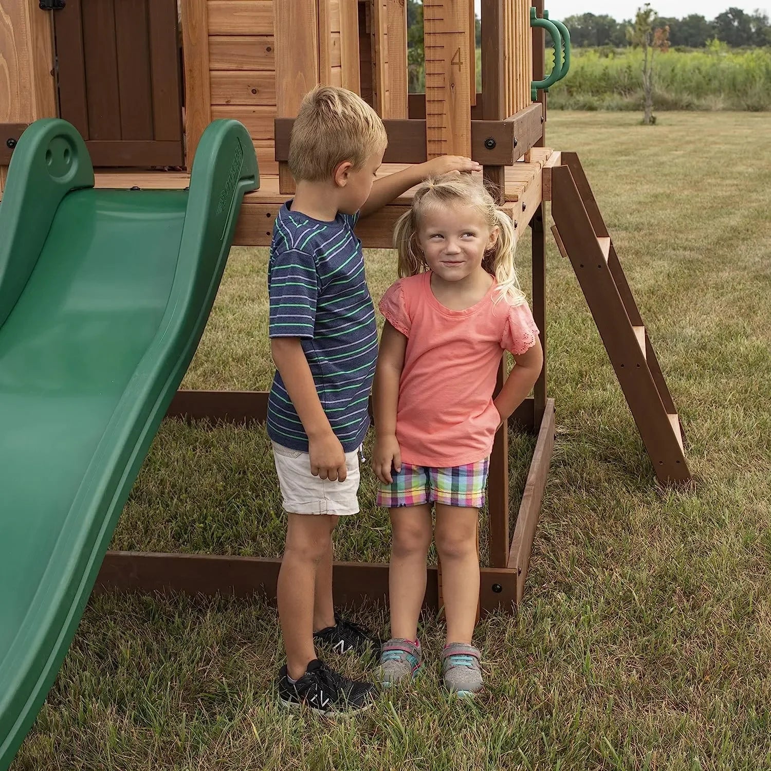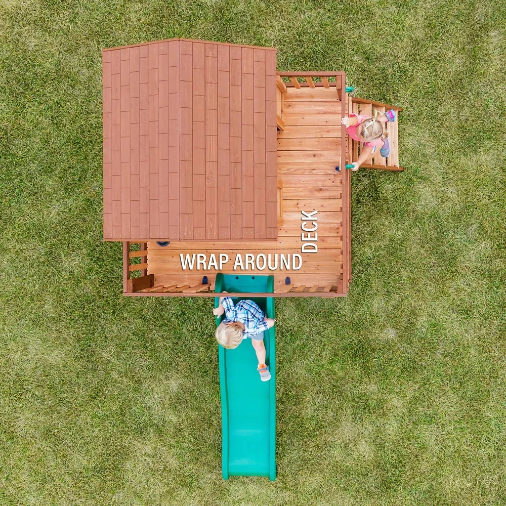 Backyard Echo Heights Playhouse – Elevated Cedar Wood Playhouse with Slide, Play Kitchen & Growth Board