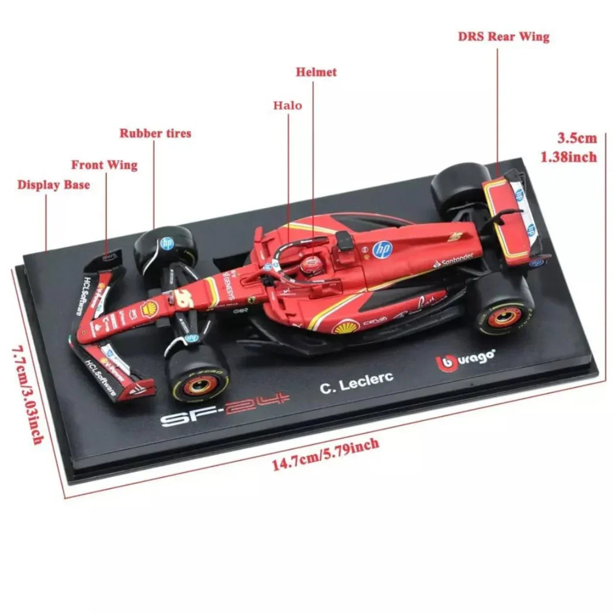 Bburago Premium Edition – Officially licensed 1:43 scale Ferrari SF24 #16 driven by Charles Leclerc in the 2024 Formula 1 season.