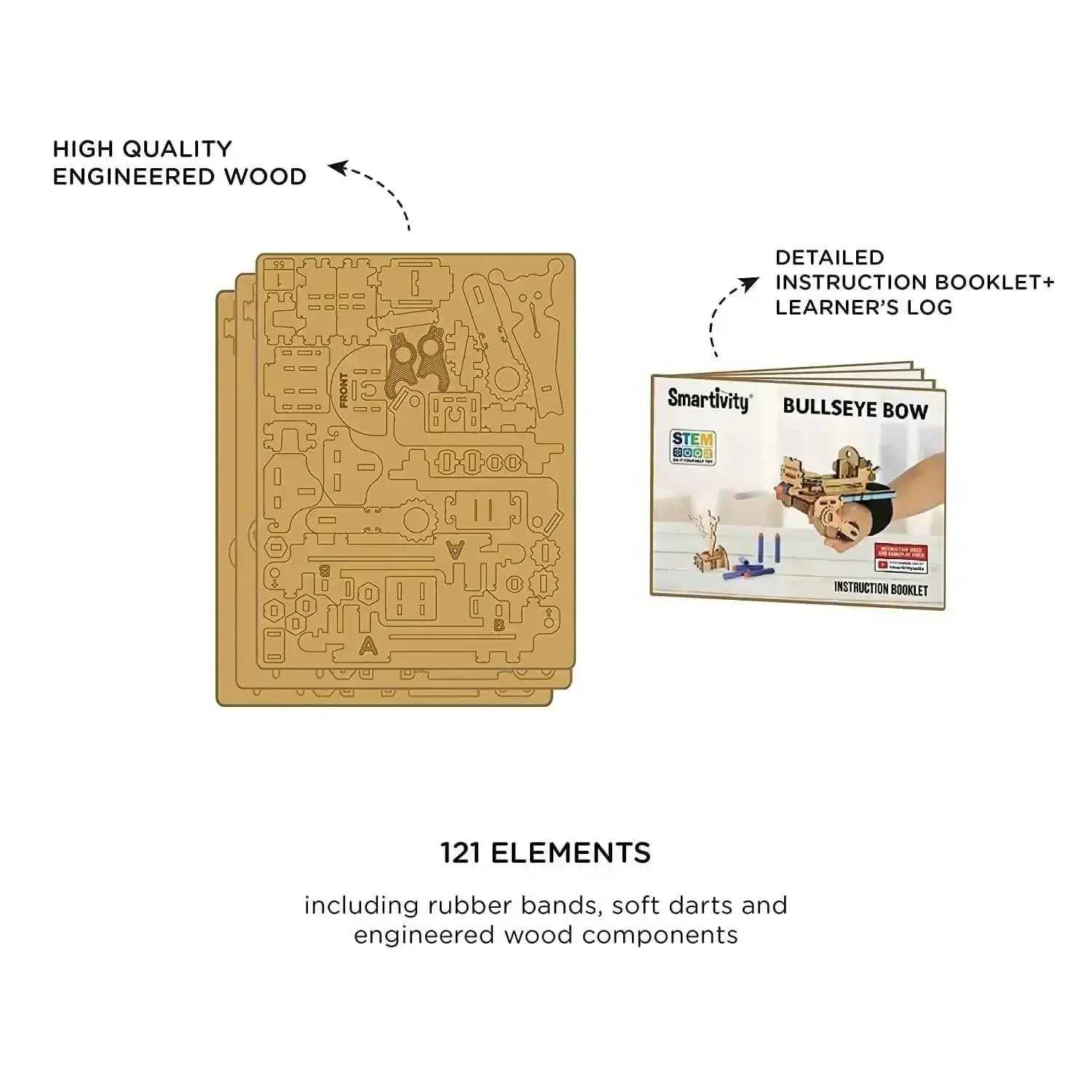 The Smartivity Bullseye Bow offers a perfect blend of educational and recreational activity for children aged 8 to 14 years who are curious about science and eager to develop new skills. This engaging kit allows kids to build their own bullseye bow from high-quality imported pine wood with non-toxic materials that ensure safety and durability, while avoiding splinters or sharp edges. Designed thoughtfully with 115 precision parts and an easy-to-follow instruction booklet, children can assemble the bow in approximately 120 minutes, unlocking a hands-on experience that combines construction skills with real-world physics concepts. The Smartivity Bullseye Bow teaches fundamental principles of elasticity, projectile motion, momentum transfer, and aerodynamics—all through interactive play that fosters cognitive growth, mechanical understanding, and STEM learning.