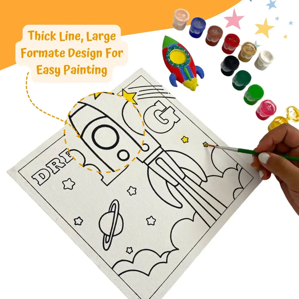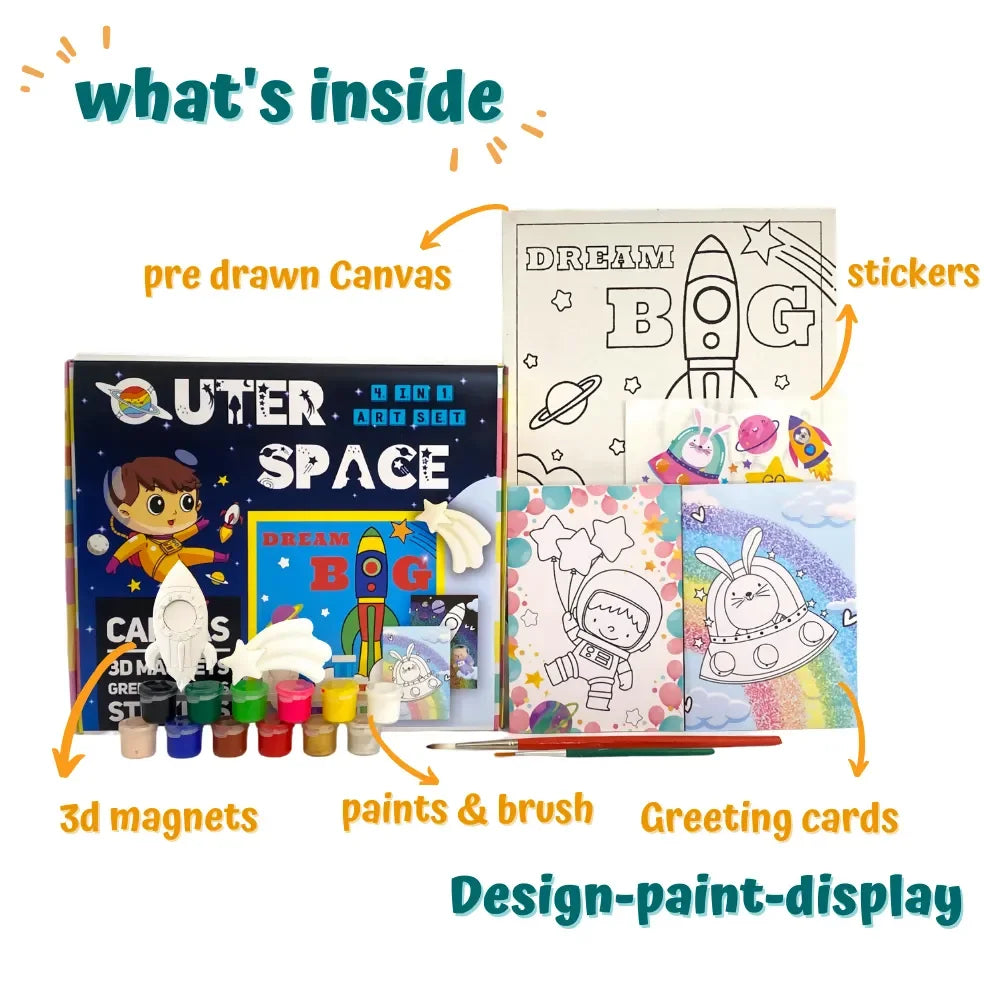 Craftopedia 4 In 1 Canvas Set – Outer Space | Kids DIY Painting Kit with Pre-Drawn Canvases | Creative Art Set