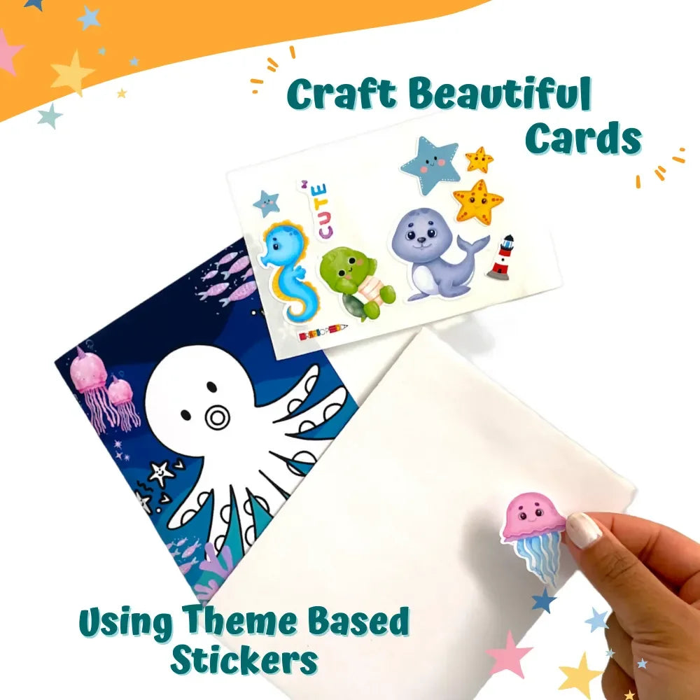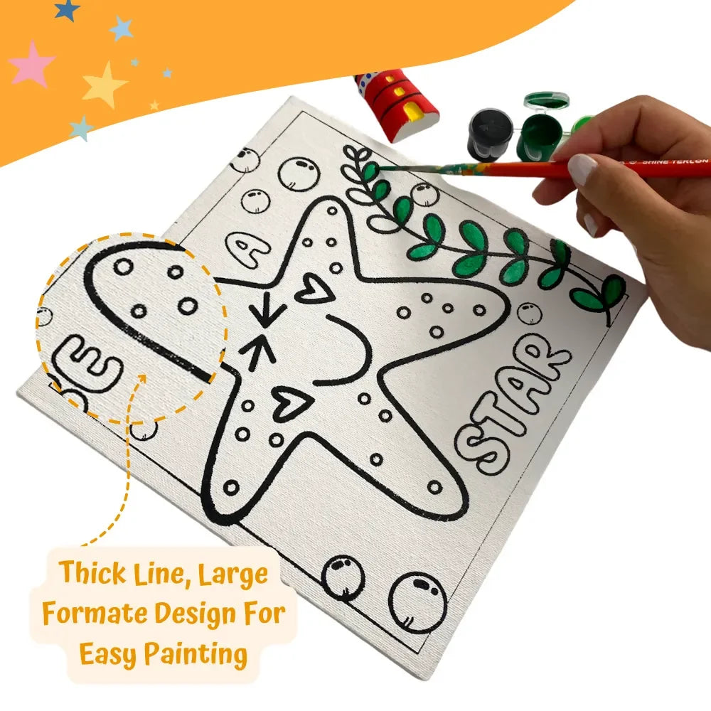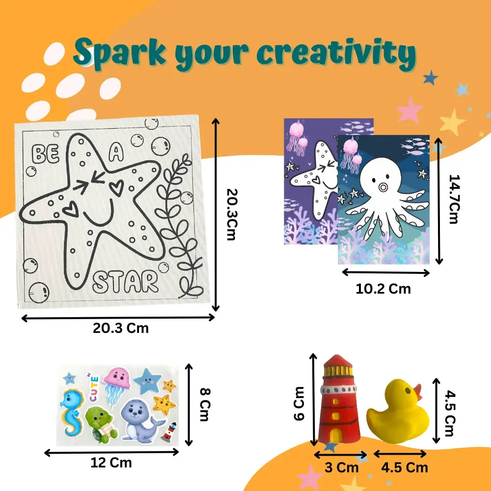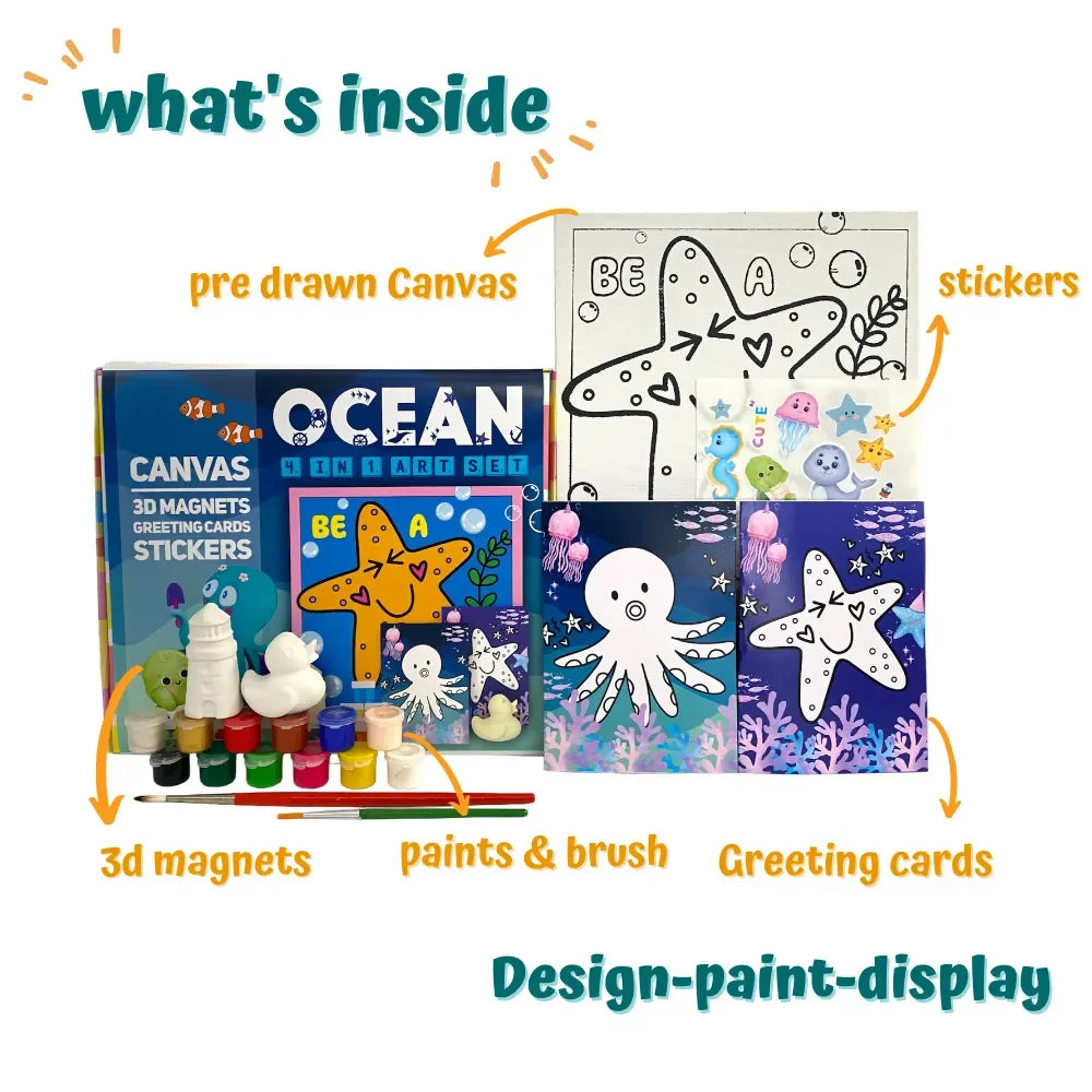 Craftopedia 4 In 1 Canvas Set – Ocean | DIY Underwater Painting Kit for Kids | Marine Life Pre-Drawn Canvases | Creative Gift for Children