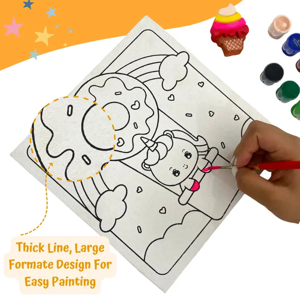Craftopedia 4 In 1 Canvas Set – Unicorns In Candyland | DIY Painting Kit for Kids | Pre-Drawn Canvases | Magical Art Gift