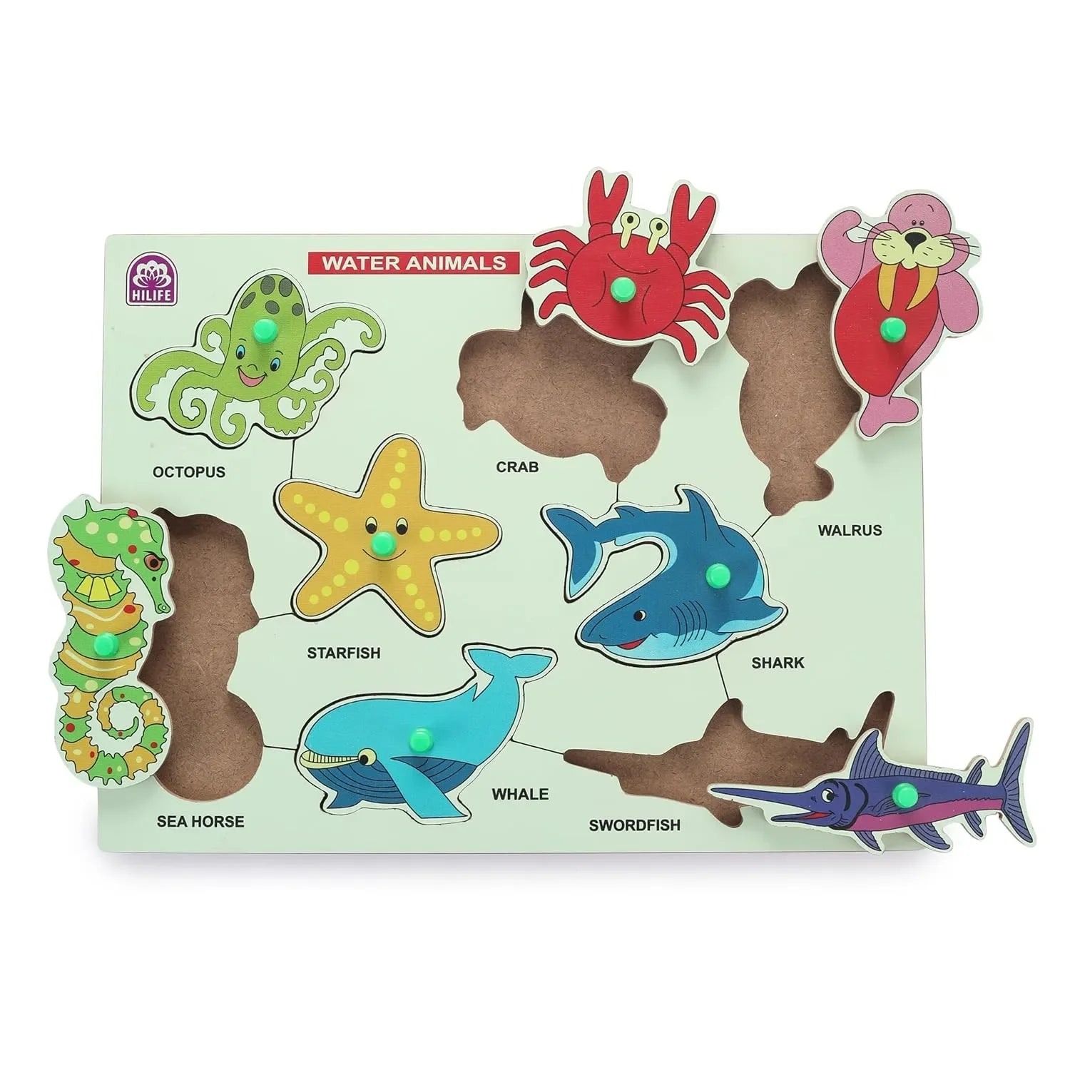 Introduce your child to the enchanting world beneath the waves with the HiLife Educational Water Animals Puzzle Board – Gold Series, a thoughtfully designed wooden peg puzzle that combines education with entertainment. Created to stimulate the minds of toddlers and preschoolers, this puzzle features a collection of popular aquatic animals—from dolphins and turtles to whales and octopuses—carefully illustrated and cut into individual puzzle pieces. It’s more than just a toy—it’s a foundation for early learning that blends visual recognition, language development, and fine motor skills into a single engaging experience.