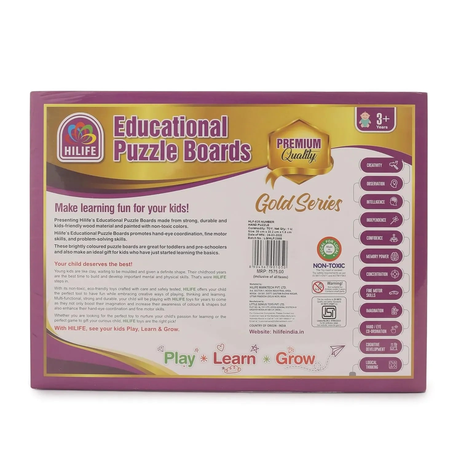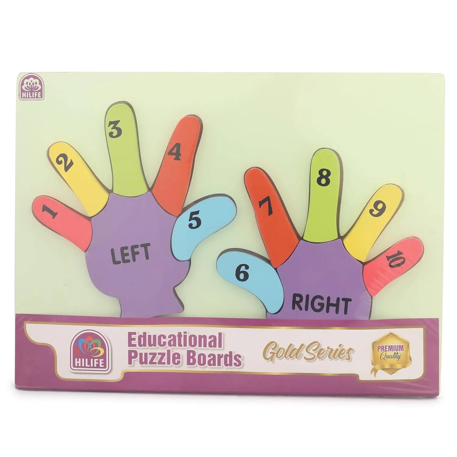 Introduce the basics of numeracy to your little one with the HILIFE Educational Hands Shape Puzzle Board – Gold Series (026). This thoughtfully designed wooden puzzle is crafted to engage young learners aged 3 years and above with its unique hands shape layout and brightly colored number pieces from 1 to 10. As part of the Gold Series by HILIFE, this learning board combines durable construction with educational value, making it a reliable and engaging resource for early childhood development.
