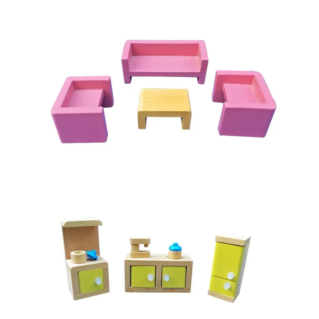 Hilife Fully Furnished Doll House for Kids | Wooden Pretend Playhouse with Rooms, Furniture & Accessories | Imaginative Toy for 3 Years and Above