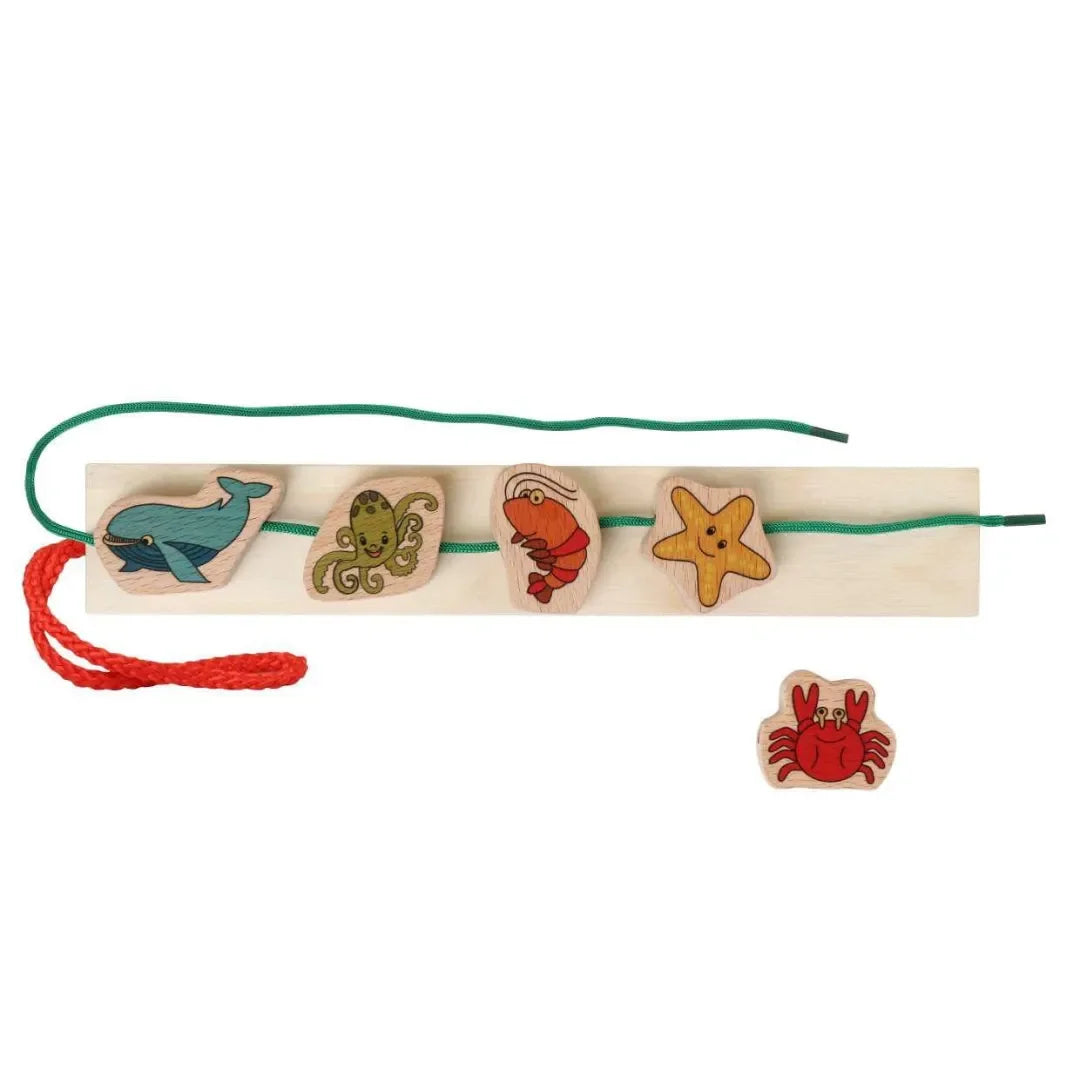 HILIFE Kids Lacing Wooden Toys (134) – Educational Sea Animal Puzzle with Storage Box