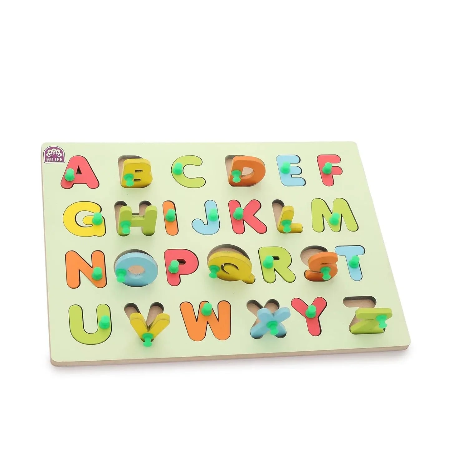 HILIFE Wooden Alphabet Puzzle Board – A to Z Letters – Gold Series Educational Toy with Pegs for Toddlers – Premium Learning Puzzle for Early Letter Recognition and Motor Skills Development