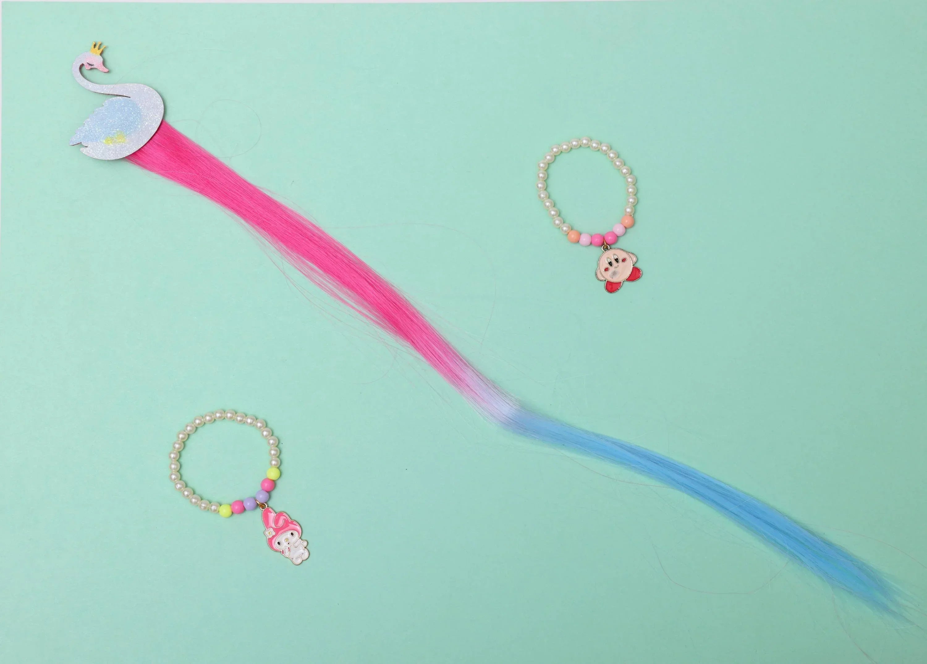 ilearnngrow offers colorful and elegant synthetic hair extensions with beautiful Cartoon Design hair clip to your little girl. It is attached with an Alligator hair clip, which you can easily attach to her hair. If you or your child enjoys having fun, these ultra-neon nylon hair extension clips are ideal. These hair clips are likely to catch anyone's attention. The material is a silky soft nylon that feels excellent at gatherings. Celebrate by experimenting with different hairstyles. A fun party favor for any occasion and a wonderful carnival award. A popular party favor and an excellent addition to party and beauty supplies. The vivid colors make the hairpieces an excellent choice. Color highlighter for small children