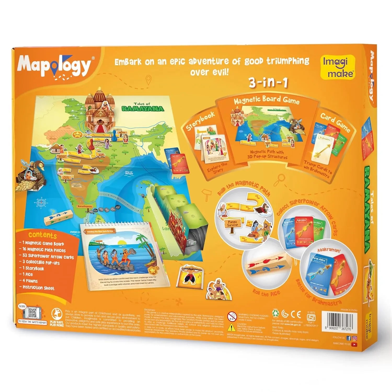 Imagimake Mapology Tales of Ramayana | 3-in-1 Magnetic Board Game, Ramayana Storybook, and Trump Cards | Interactive Educational Family Game for Kids Age 8-12