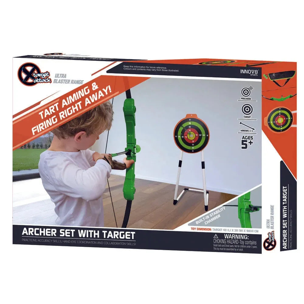 Innov8 Archer Set with Target Stand 22954 – Archery Training Set for Kids Age 5+ | Includes Adjustable Bow, Suction Arrows & Portable Target