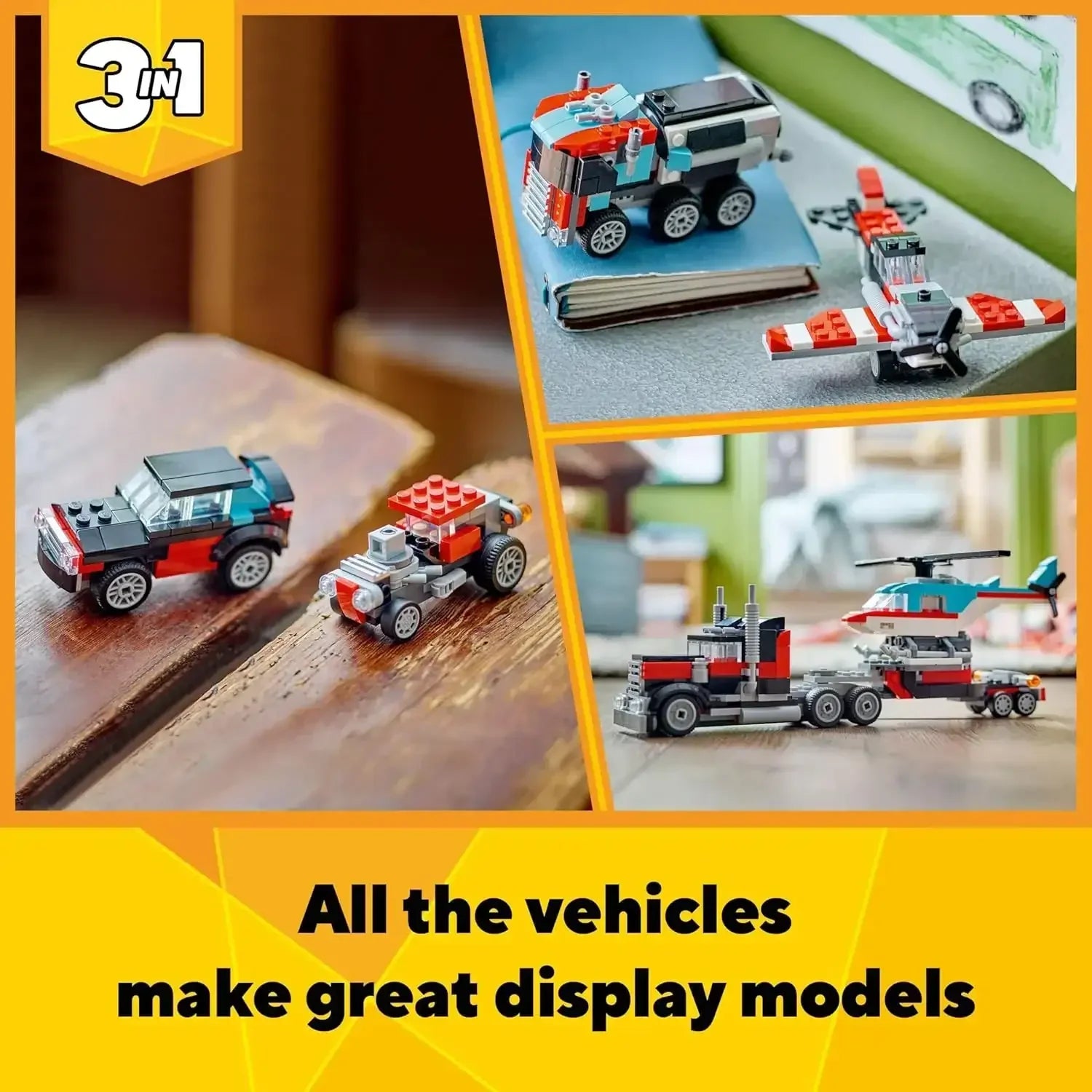 LEGO Creator 3-in-1 Flatbed Truck and Helicopter Building Toy for Kids