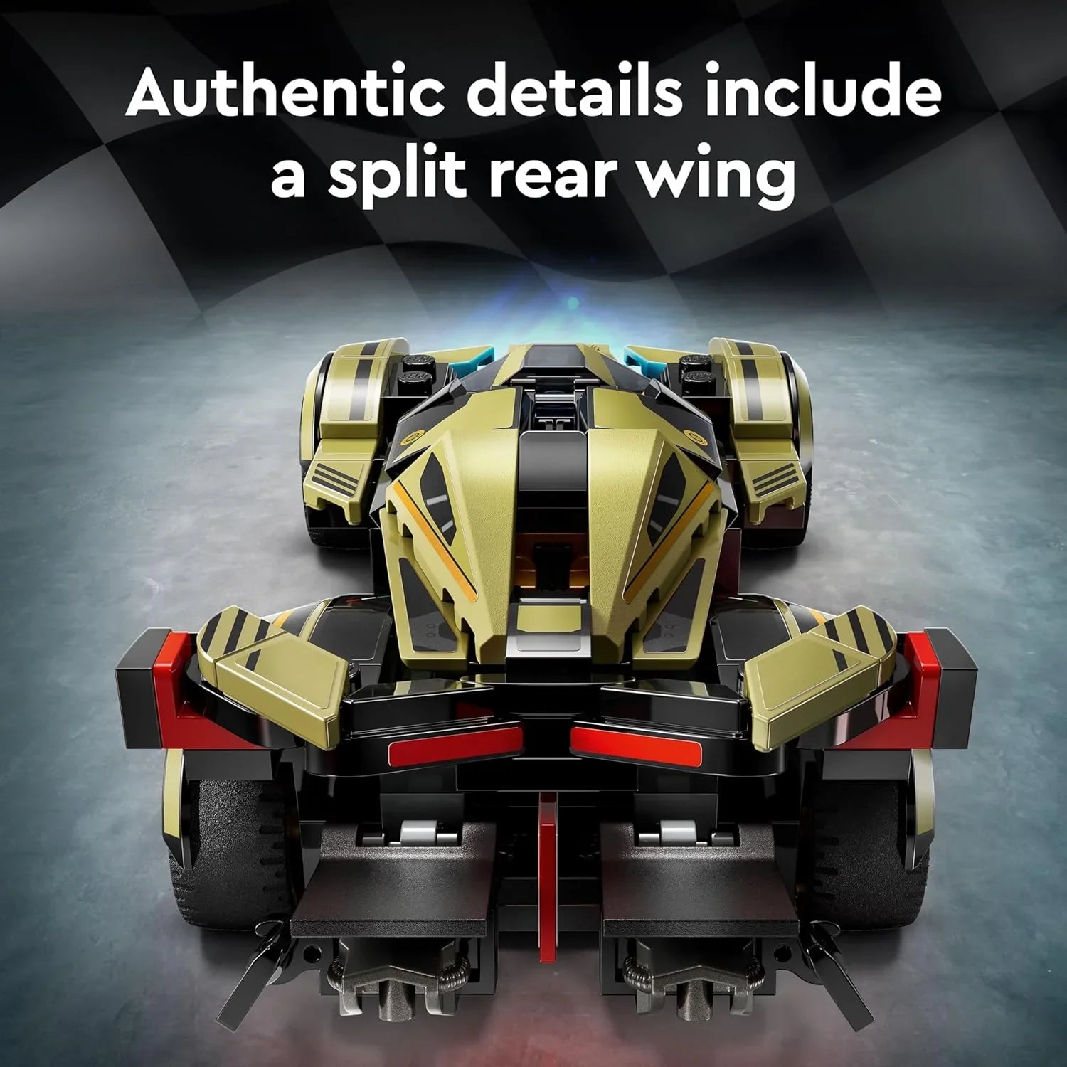 The LEGO Speed Champions 76923 Lamborghini Vision GT Supercar allows young car enthusiasts and adult collectors alike to explore the essence of modern supercar design through hands-on building. This stunning replica includes signature Lamborghini styling elements such as a split rear wing, hexagonal wheel alloys, dual exhausts, and Y-shaped taillights. Every detail is recreated with precision to reflect the legendary craftsmanship that defines Lamborghini’s iconic lineup.