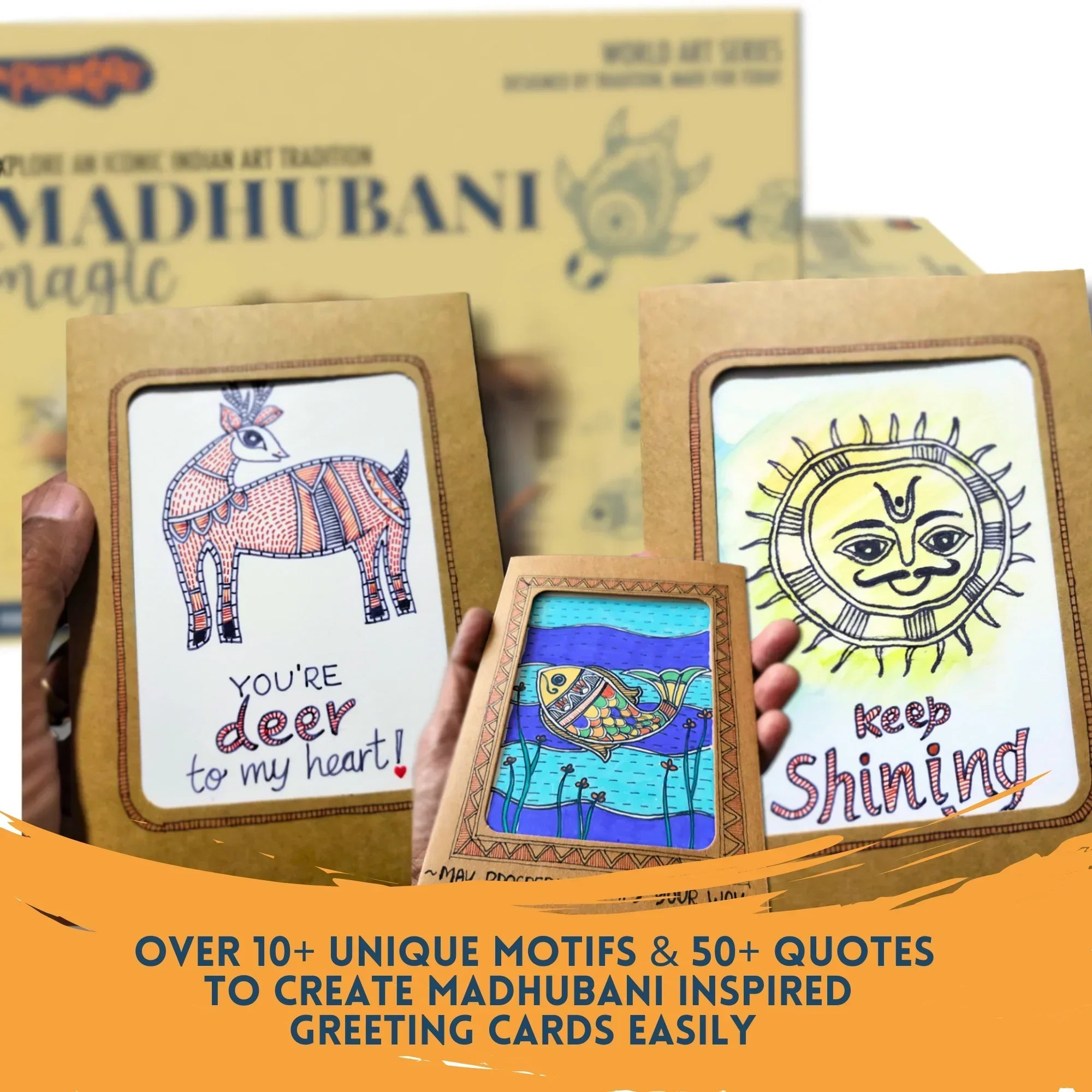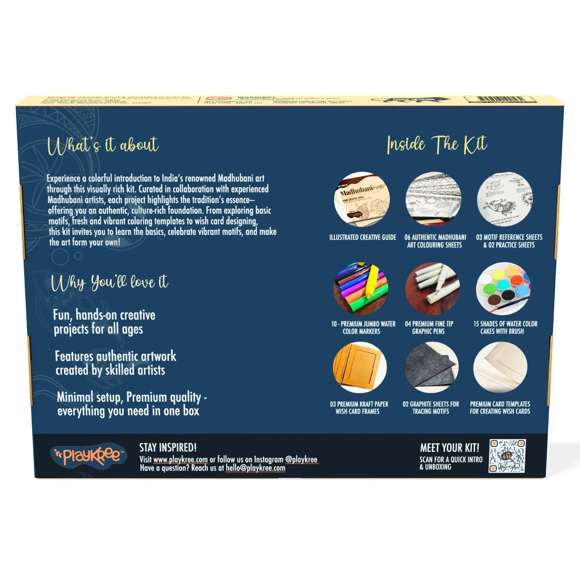 Inside, you’ll find authentic Madhubani designs, premium-quality materials, and easy practice sheets - everything thoughtfully curated to help you create beautiful, soulful art with your own hands.