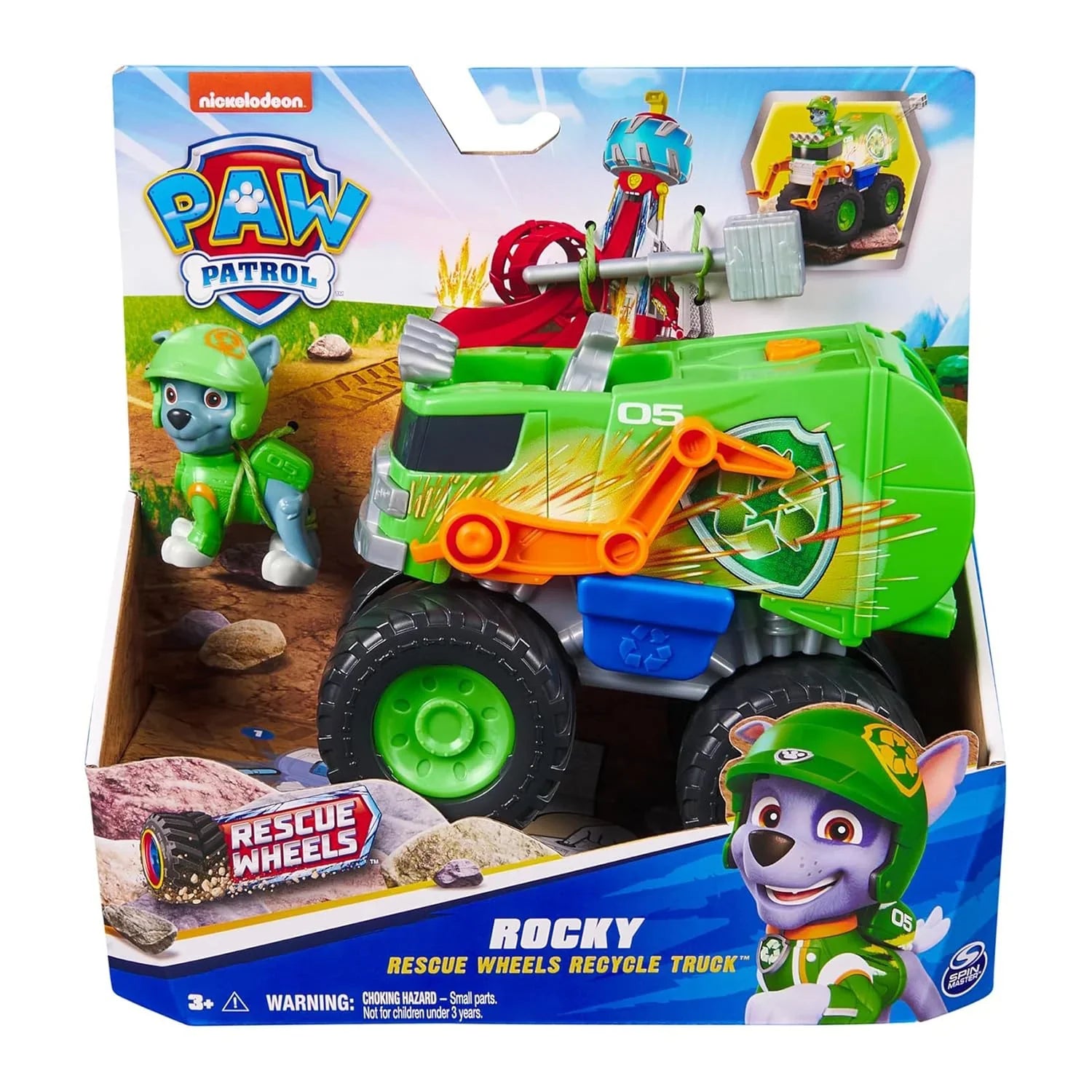 Bring eco-friendly rescue adventures to life with the Paw Patrol Rocky Off-Road Recycle Rescue Truck, a premium action vehicle designed for imaginative play, character-based storytelling, and hands-on fun. This collectible rescue truck features oversized monster-style wheels, a high-quality build, and an exclusive Rocky figure dressed in his upgraded Rescue Wheels uniform. Perfect for children aged 3 and above, it delivers dynamic action through its built-in projectile launcher and signature recycling-themed design inspired by the show.