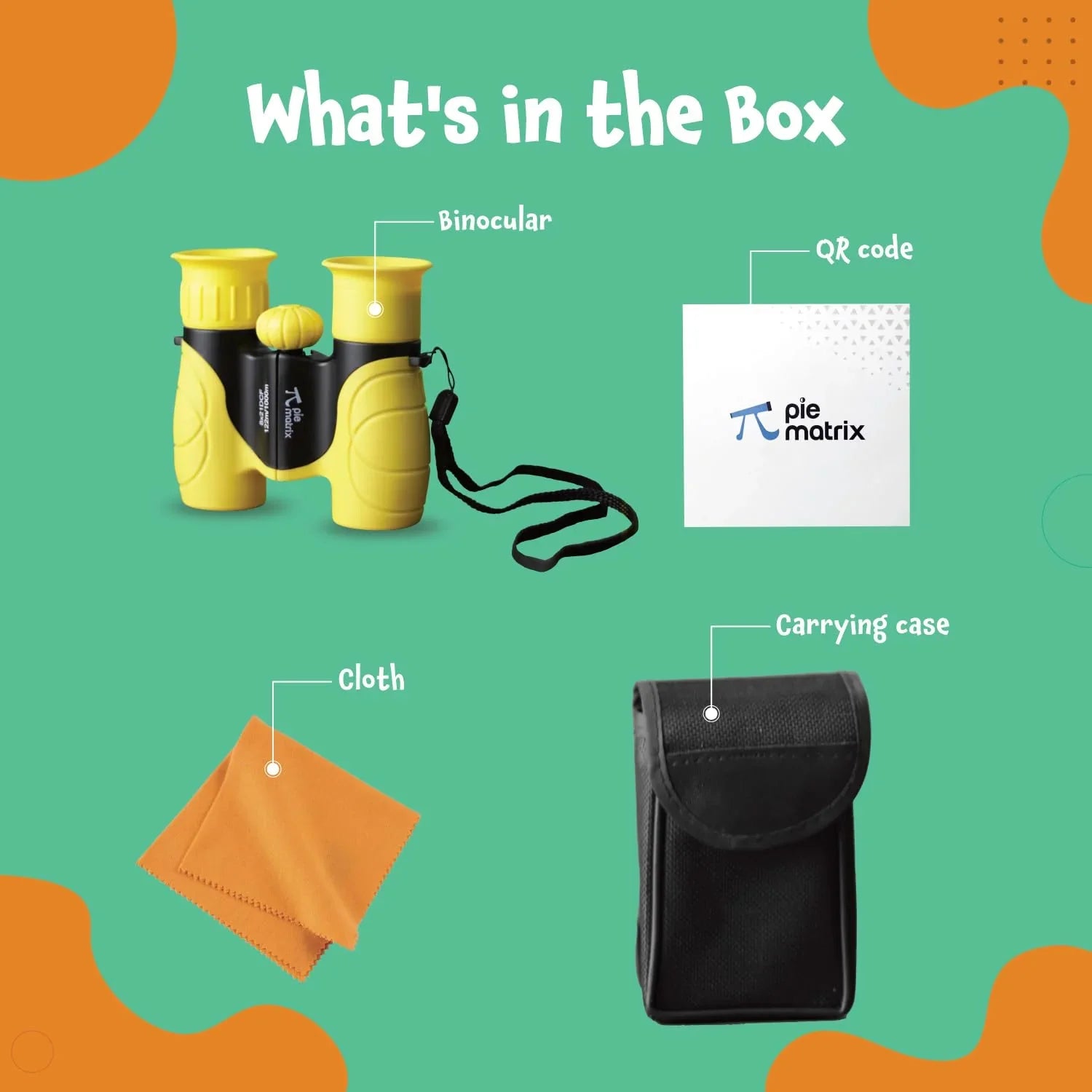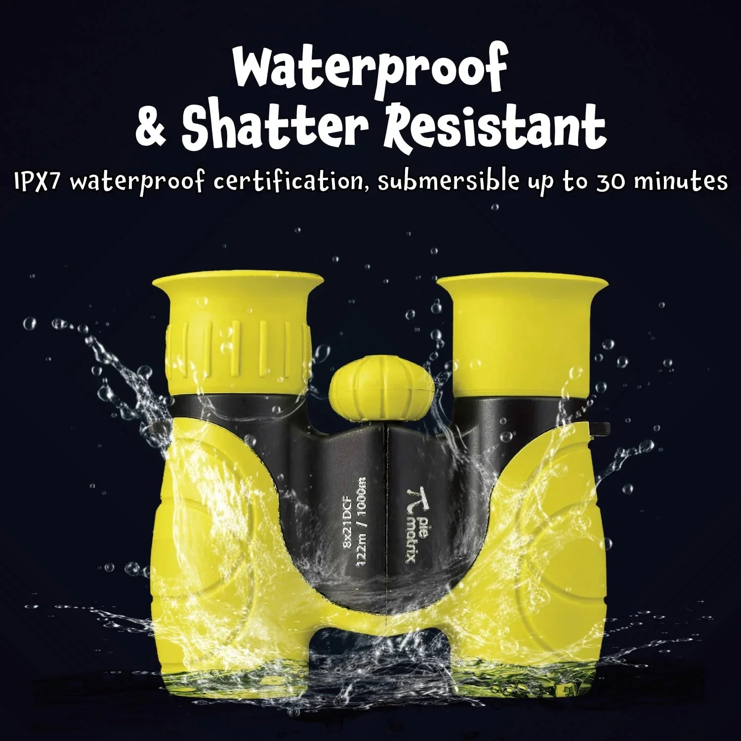 Explore the outdoors like never before with the Pie Matrix Junior Explorer Binoculars, designed to bring the wonders of nature up close for both kids and adults. With 8x powerful magnification, a compact 21mm objective lens, and BAK-4 roof prism optics, these binoculars deliver stunning visual clarity in a child-friendly, travel-ready form. Whether you're birdwatching in the park, hiking mountain trails, camping under the stars, or spotting wildlife on a safari, this model offers performance and portability that’s hard to beat. With a durable, shockproof and waterproof build, the Junior Explorer binoculars are built to thrive in unpredictable outdoor conditions—rain or shine. Weighing just 219 grams, they’re light enough for children to handle comfortably, yet packed with professional-grade optics that even adult users will appreciate.