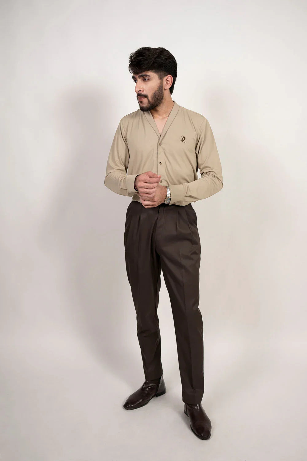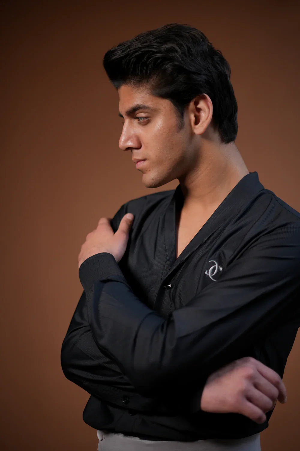 Command attention in this prestige shirt—stretch poly comfort-fit, refined inverted pleat & CC embroidery. Perfect power piece for modern professionals.