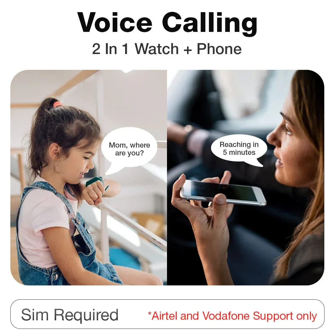 "1) 2G Smart watch phone voice calls – Just insert a SIM (airtel or voda) in this watch and let the child make 2-way audio call to any number directly from the watch. For kids safety,