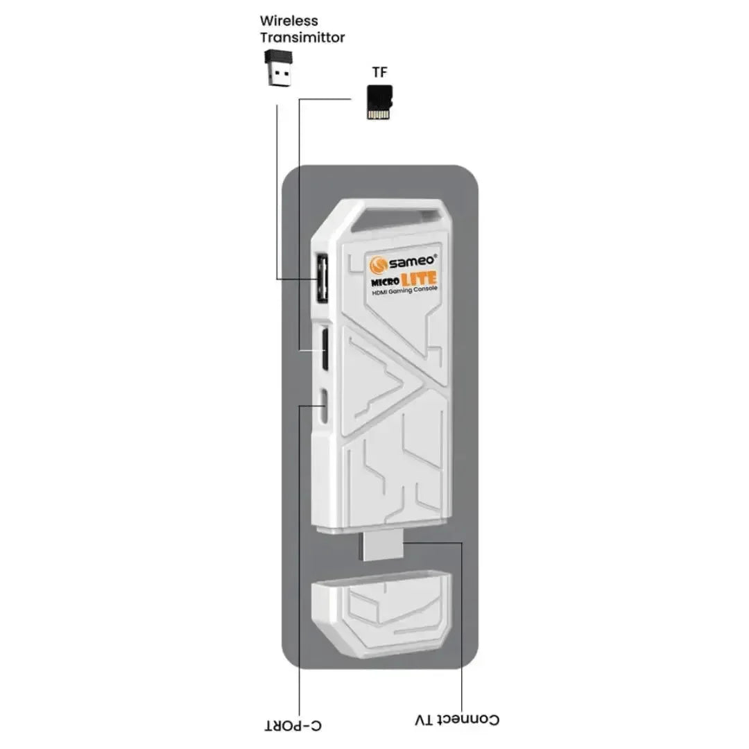 Unleash the power of classic gaming with the Sameo Micro Lite HDMI Gaming Console in White, a compact yet powerful retro gaming system built for today’s living rooms. Featuring an impressive library of 10,000 built-in retro games, this versatile game stick offers an authentic arcade experience with modern enhancements. Whether you're a nostalgic adult gamer or introducing timeless classics to your kids, this console supports dual-player gaming with two 2.4GHz wireless controllers, ensuring freedom of movement and responsive gameplay. With support for 40 emulator formats, you can dive deep into a wide variety of genres—from adventure and racing to shooting and puzzle games. The original 3D rocker and anti-skid cockpit controls offer tactile feedback and precision, replicating arcade-style gameplay. With 4K Ultra HD HDMI output, your favourite retro games look better than ever, while multi-media features allow for music playback and video viewing. Housed in a sleek, futuristic Mecha design, the Sameo Micro Lite in White is as stylish as it is functional—perfect for gifting, home entertainment, or pure nostalgia.