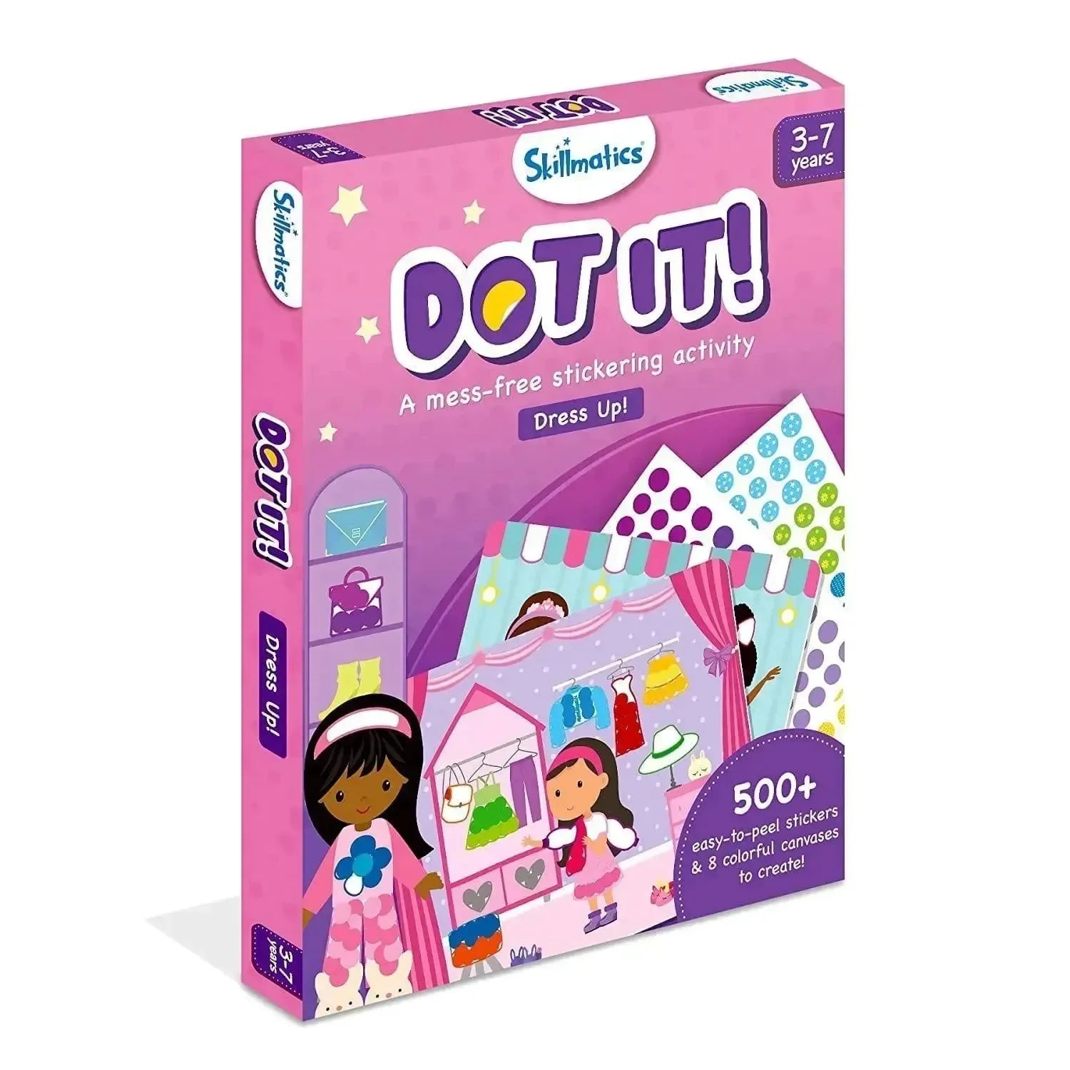 Skillmatics Dot It! Dress Up | 500+ Reusable Stickers | 8 Canvas Scenes | Fine Motor Skill Activity Kit for Girls & Boys