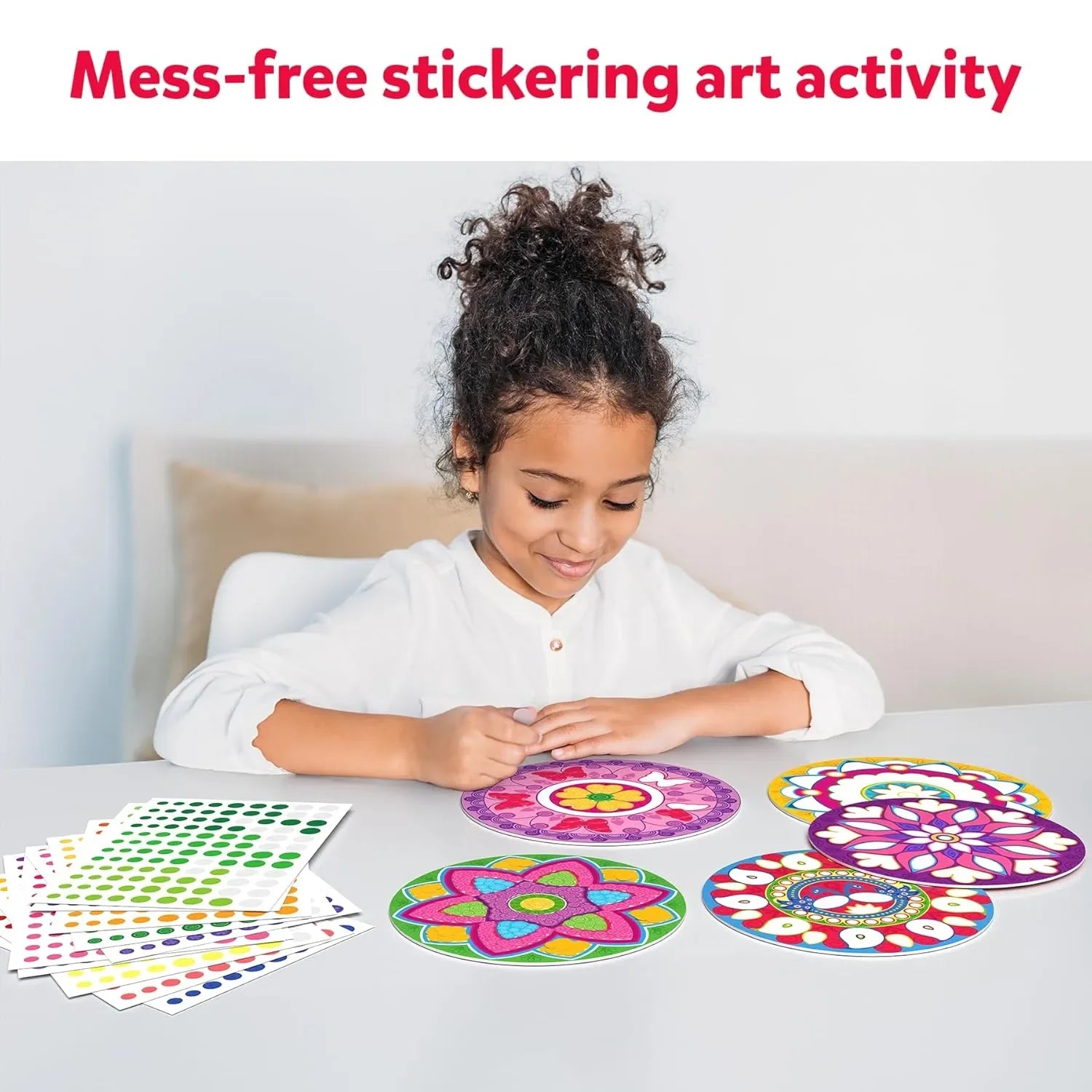 Includes 30 sheets of colorful, easy-peel stickers to complete 8 beautiful mandala designs, each designed to captivate young artists.