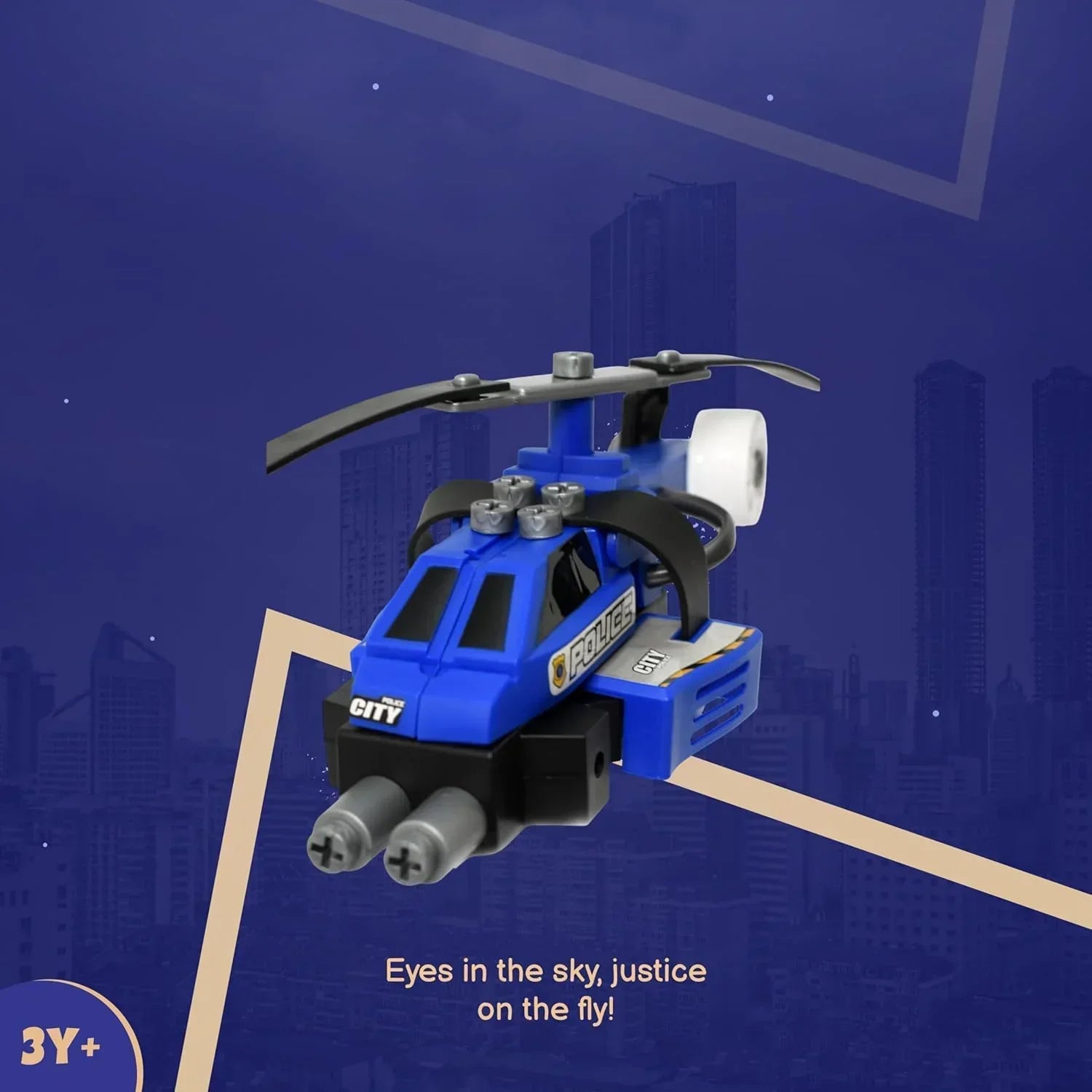 5-in-1 Transformable Fun: Assemble different crime-fighting vehicles including police cars and rescue trucks.