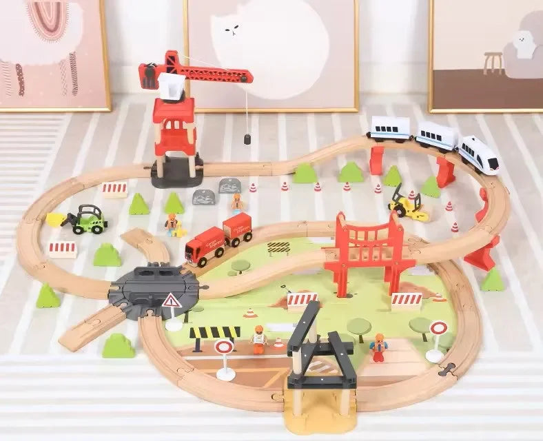 1. Encourage creativity and learning This Train Set with Wooden Blocks encourages interactive play and creative exploration, making it a perfect addition to any Montessori classroom or home play area.
