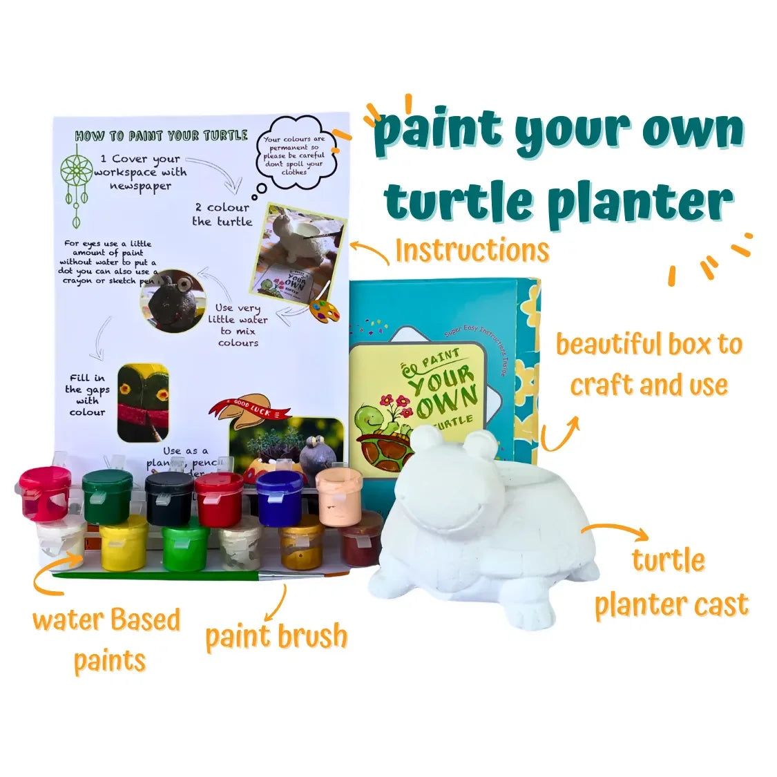Craftopedia Paint Your Own Planter – Turtle | DIY Ceramic Painting Kit for Kids | Creative Craft Activity