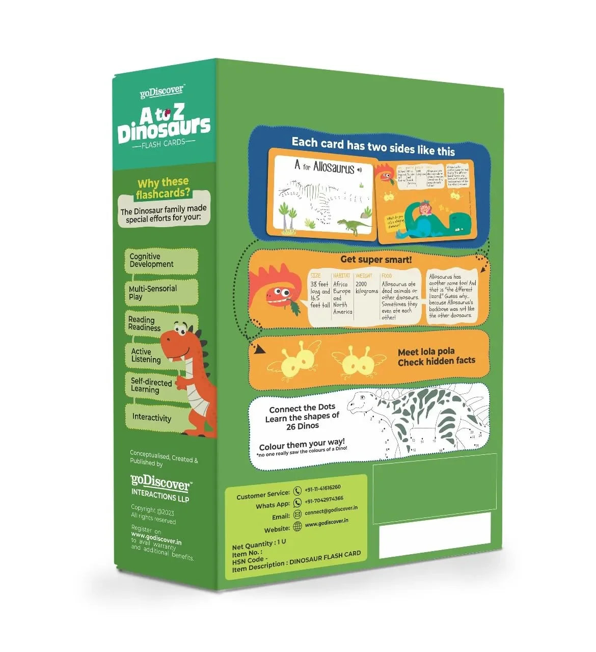 Smart Pen Compatible: These cards are fully compatible with the goDiscover Smart Pen (sold separately). When used with the Smart Pen, children can tap on the cards to hear pronunciation, dino facts, sounds, and more—adding a rich auditory layer to their learning experience. However, the flashcards can also be used effectively without the pen, making this a versatile resource for early learners at home or in the classroom.