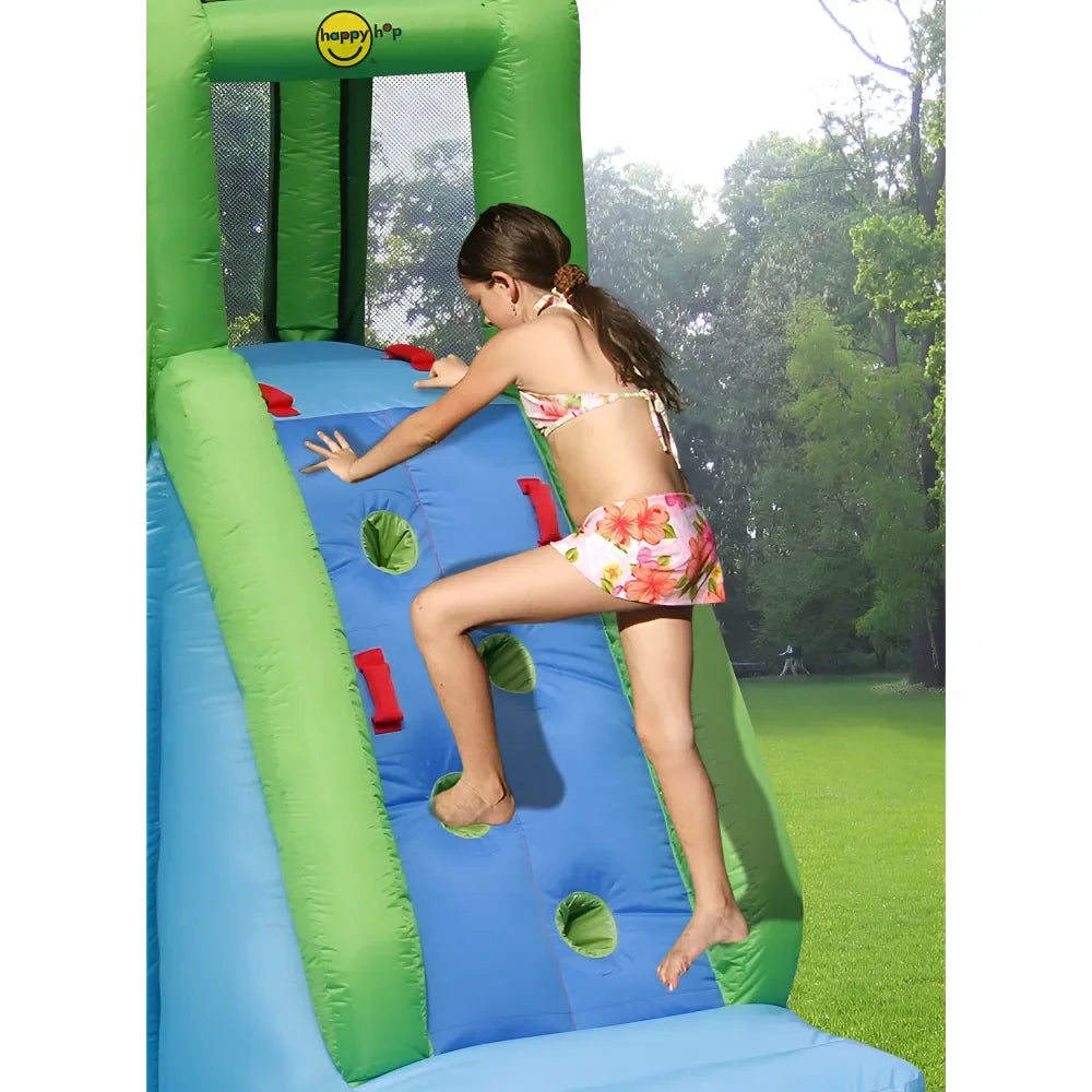 Transform your backyard into a private water park with the Happy Hop The Crocodile Pool, a premium inflatable water slide that combines thrilling features, imaginative design, and child-safe construction for the ultimate outdoor fun experience. Built to inspire hours of laughter and physical play, this crocodile-themed inflatable playset features a splash pool, a climbing wall, an extra-long water slide, and a built-in water cannon, creating a multi-activity water adventure zone right at home. Crafted from durable, puncture-resistant materials and reinforced with double-stitched seams, it ensures long-lasting performance, stability, and maximum safety during use.