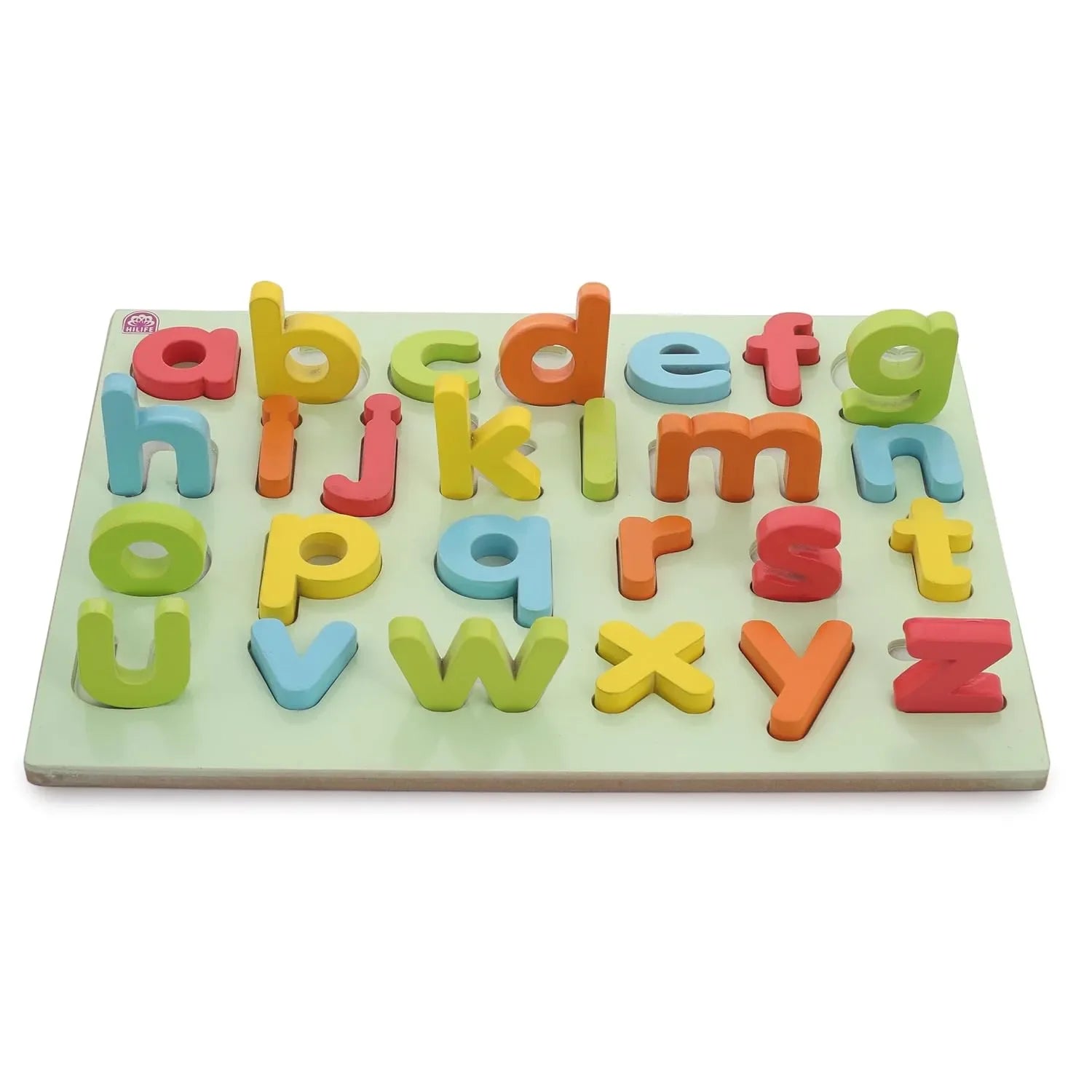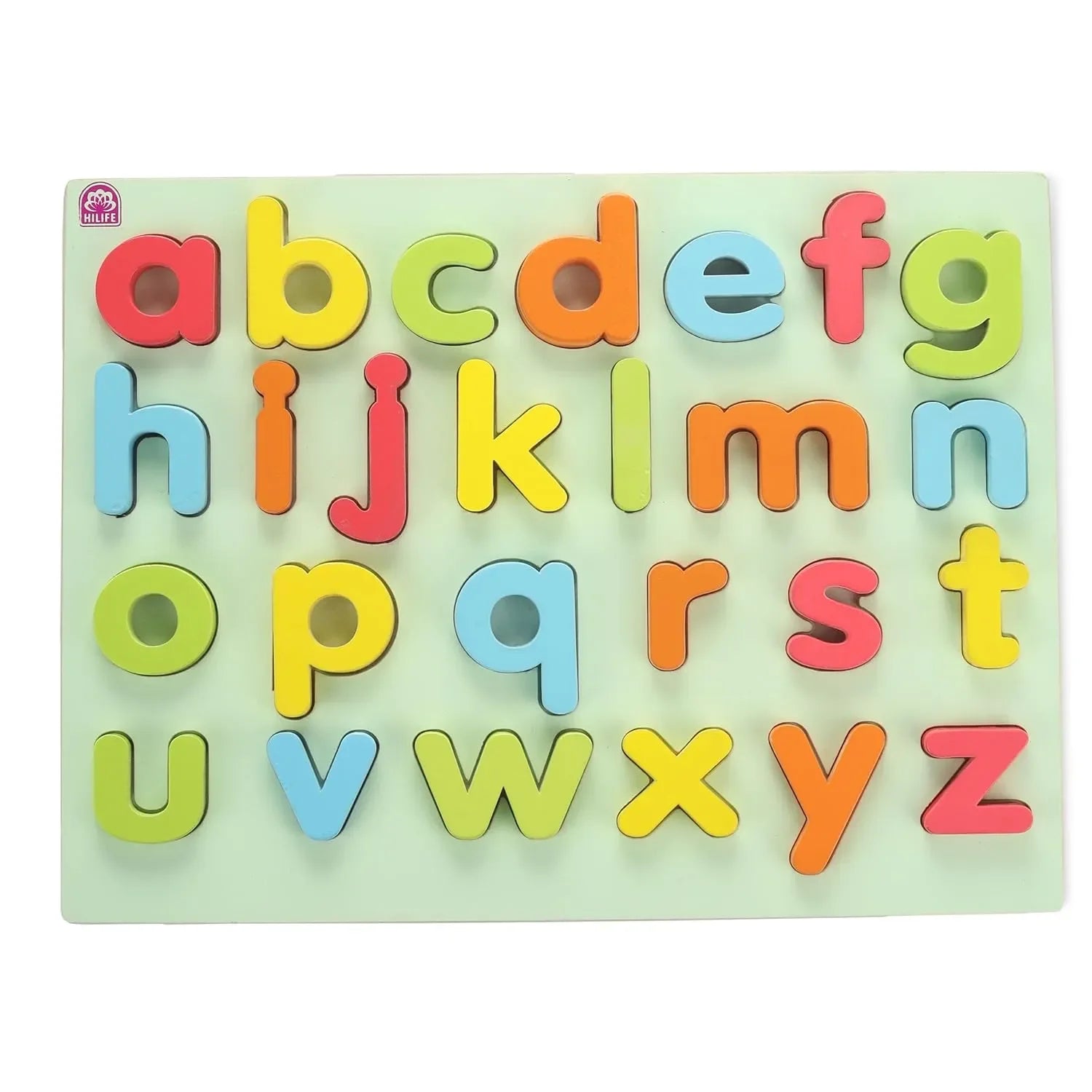 HILIFE Educational Alphabet Small Letters Puzzle Board – Wooden Peg Puzzle for Toddlers, Gold Series (a-z, 26 Pieces)