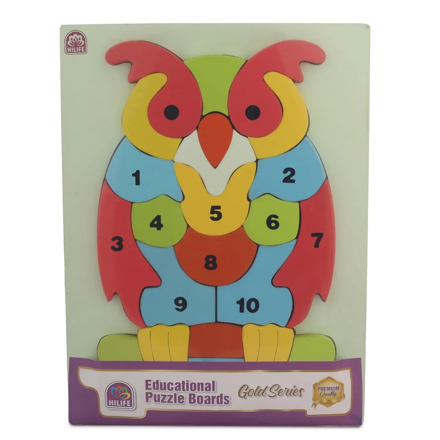 Introduce your child to numbers and early counting skills in the most captivating way with the HILIFE Educational Number Puzzle Owl Shape Board – Gold Series (028). This thoughtfully crafted wooden puzzle is more than just a toy; it is an essential early learning tool designed to make the concept of numbers enjoyable and interactive for young minds. Tailored for toddlers aged 3 years and above, this board features 10 wooden number pieces (1 to 10) set against a beautifully designed owl-shaped board—a unique and engaging visual that appeals to children and adds personality to their play experience.