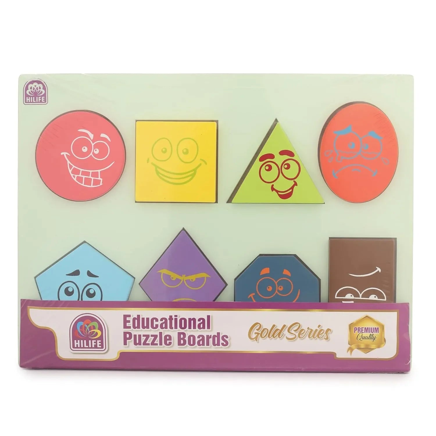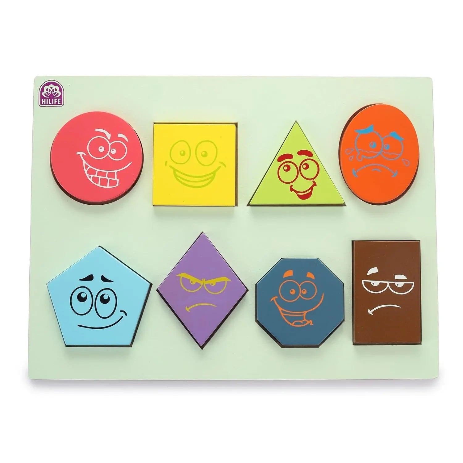 HILIFE Educational Smiley Shapes Wooden Puzzle Board – Gold Series | 8 Wooden Shape Pieces for Toddlers (027)