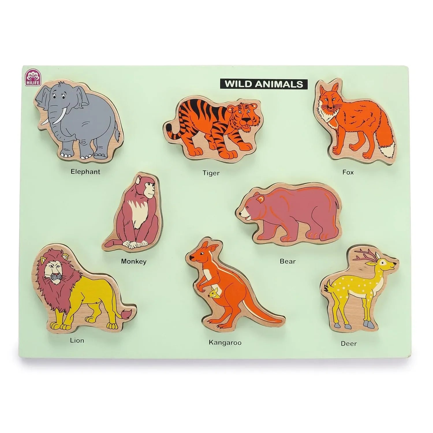 • Wild Animal-Themed Wooden Puzzle: Features 8 distinct animal puzzle pieces including lion, tiger, elephant, monkey, and others
