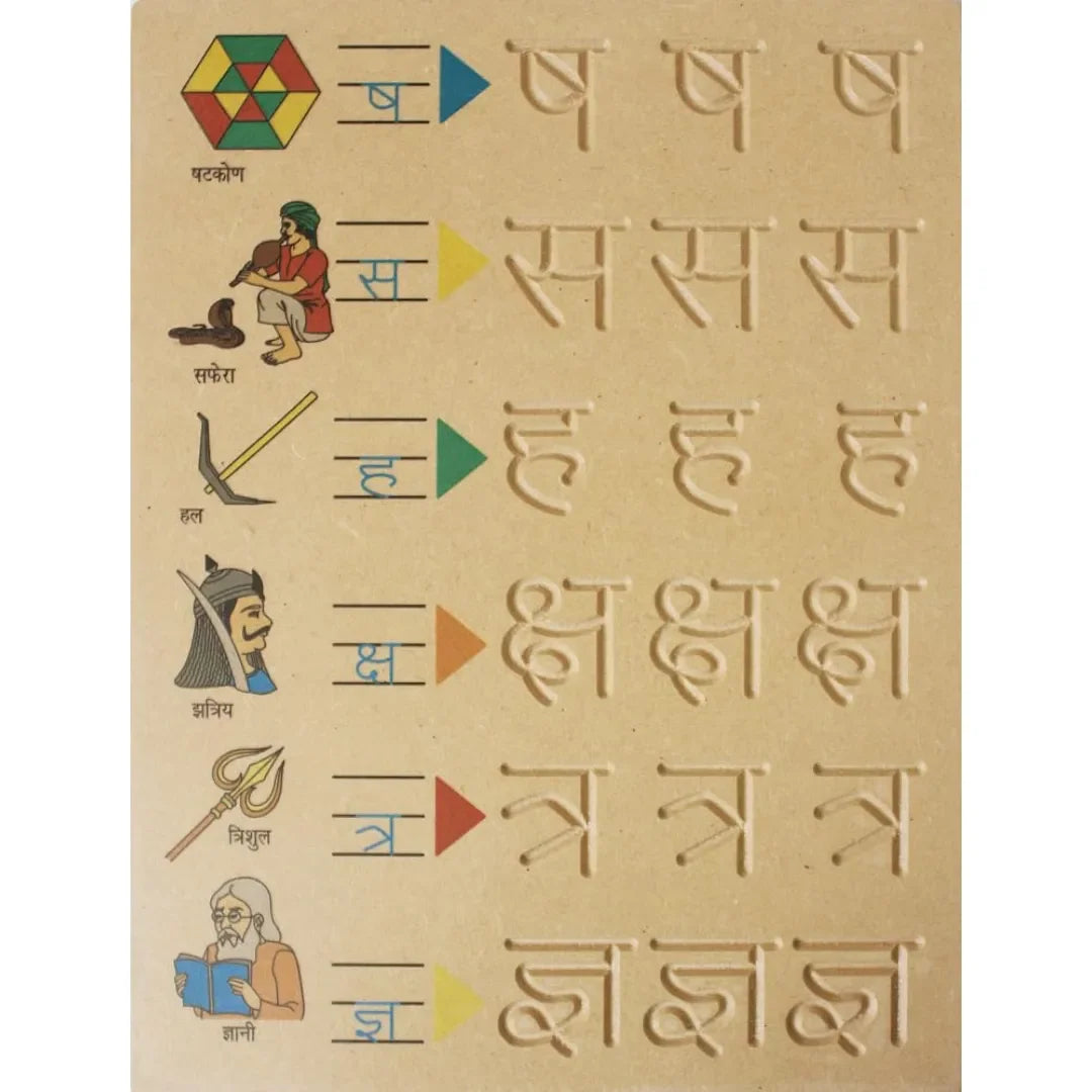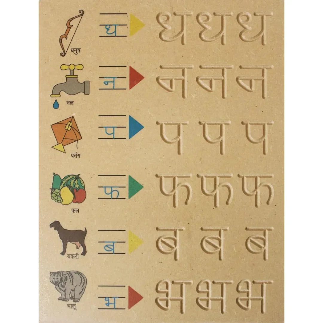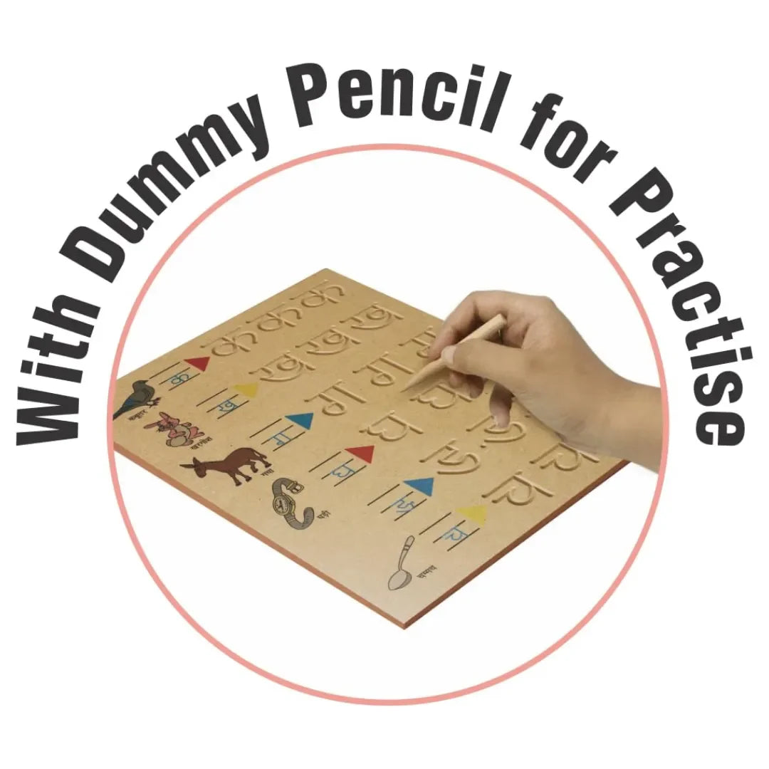 HILIFE Tiny Tots कखग Tracing & Word Board – Wooden Hindi Consonants Learning Board with Picture Words for Kids