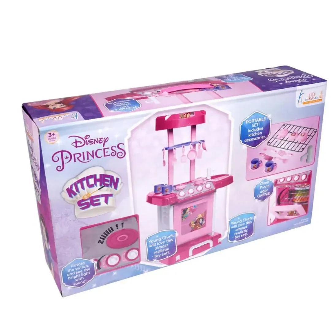 The Kriiddaank Princess Kitchen Set for Kids is the perfect toy for young aspiring chefs, especially girls who love to cook and create. This battery-operated kitchen set comes to life with light and sound effects, adding a touch of realism with sizzling and boiling sounds and light-up stovetops. Complete with a range of accessories like pots, pans, spatulas, ladles, plates, cups, and even play food items, this set encourages imaginative role play as children whip up meals or host tea parties. Crafted from durable, easy-to-clean plastic, it's safe and ideal for young children. Whether in a cozy play corner or a larger play area, this versatile kitchen set promises hours of creative fun.