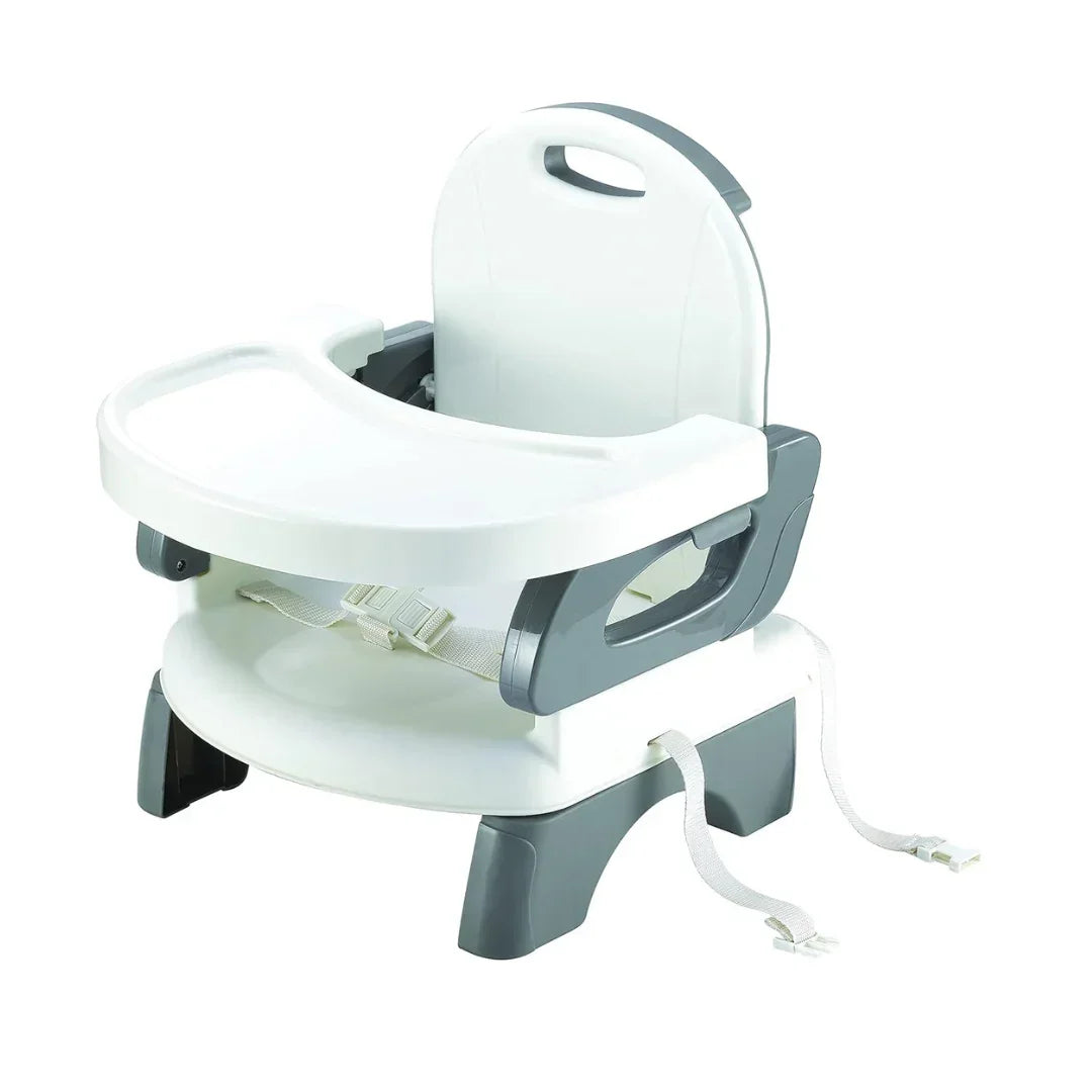 Mastela Folding Booster Seat – Grey (Model 7330) | Adjustable Height, 3-Point Safety Harness, Dishwasher-Safe Tray, Compact Folding Design for Infants 6M+