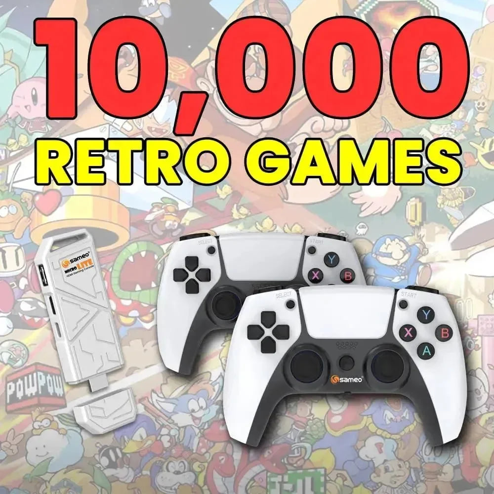 Sameo Micro Lite HDMI Game Stick – White | 10,000 Retro Games | Dual Wireless Controllers | 4K HDMI Plug & Play