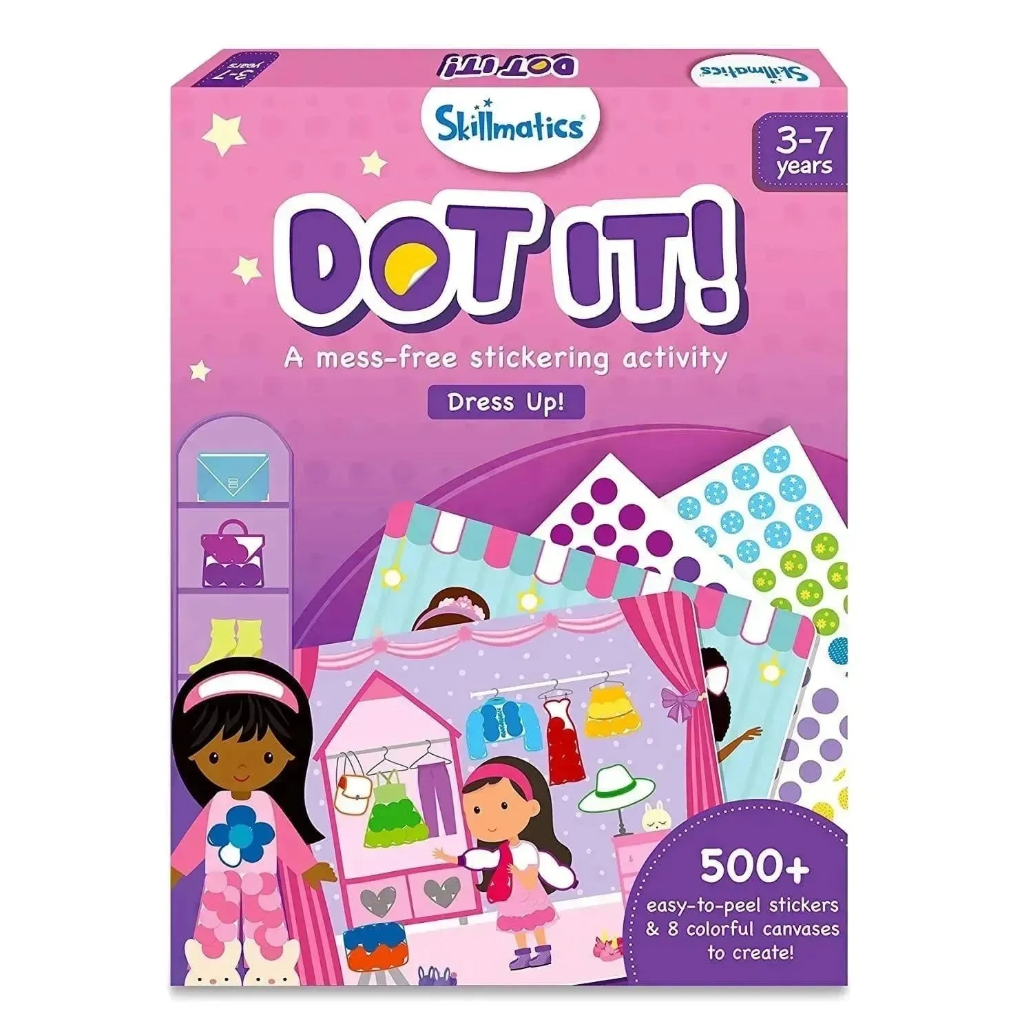 Skillmatics Dot It! Dress Up | 500+ Reusable Stickers | 8 Canvas Scenes | Fine Motor Skill Activity Kit for Girls & Boys
