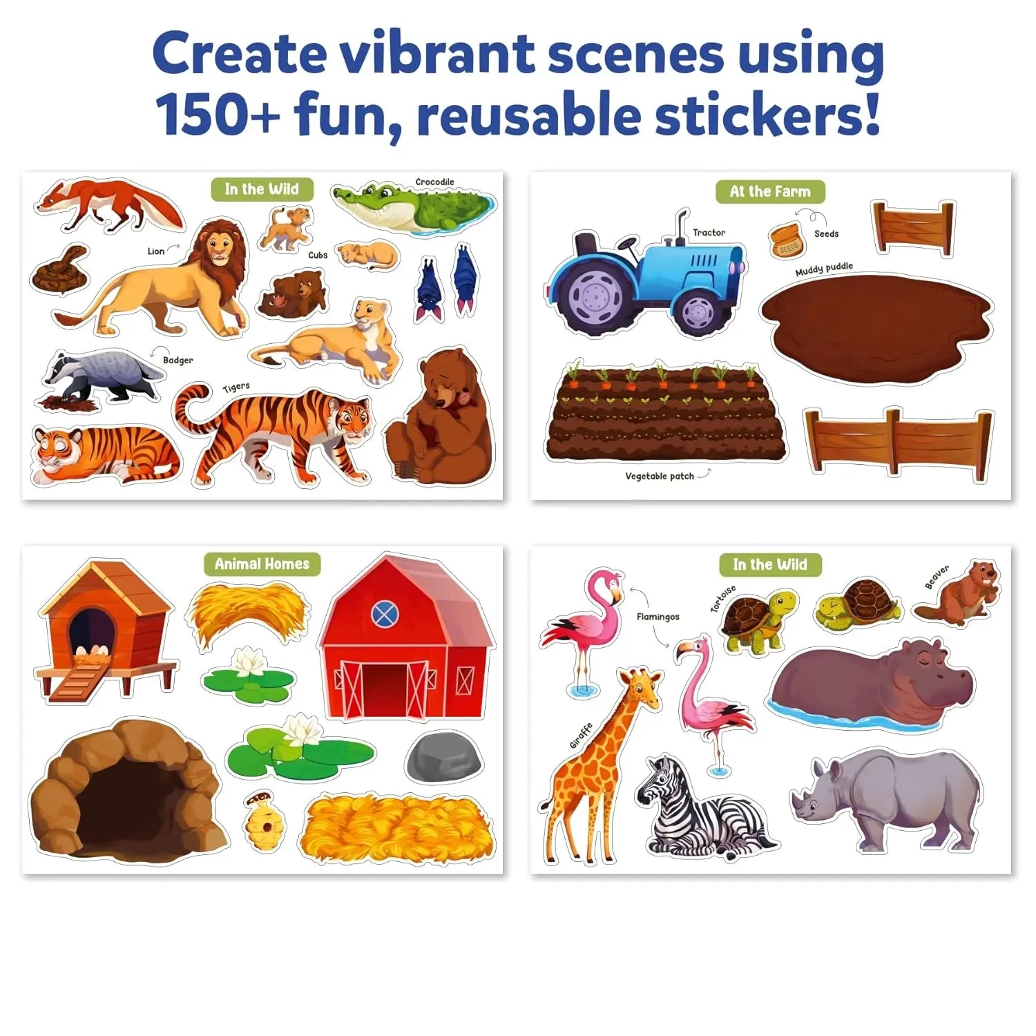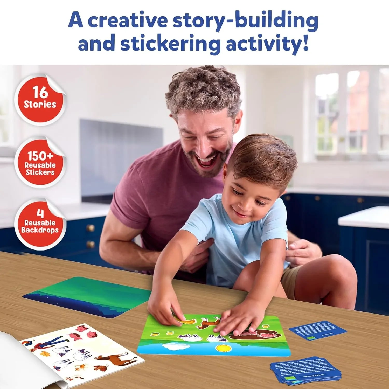 Unleash your child's storytelling potential with the Skillmatics Reusable Stickers – Animals activity kit — a thoughtfully designed, mess-free, and travel-friendly creative playset that blends fun with learning. This all-in-one set encourages young learners to engage in imaginative storytelling through tactile interaction using vibrant, repositionable stickers. With 150+ reusable stickers, 16 engaging animal-themed stories, and 4 durable, double-sided backdrops, children can dive into hours of interactive, screen-free play. Whether at home, on the go, or during quiet time, this kit is perfect for developing early literacy, sequencing, comprehension, and fine motor skills through guided narrative play.