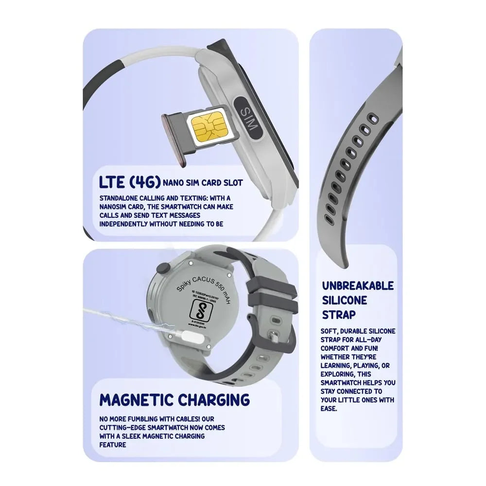 Spiky Cacus 4G Kids Smart Watch Black | GPS Tracker | Video Calling | SOS Emergency | Waterproof IPX7 | 3MP Camera | Voice Messaging | Age 4–12