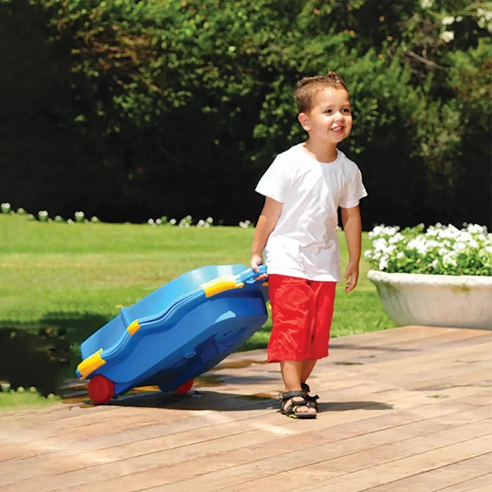 Bring the excitement of aquatic adventures home with the Starplay Water Fun Trolley, a thoughtfully designed, foldable water playset made to spark imagination and encourage hands-on exploration for toddlers and young children. This vibrant and multi-functional water activity set transforms from a compact trolley-style case with wheels into a spacious water play station, offering hours of engaging entertainment. Whether it's a sunny afternoon in the backyard or an indoor play session during a rainy day, this trolley offers the perfect solution for mess-free, screen-free, and active fun.