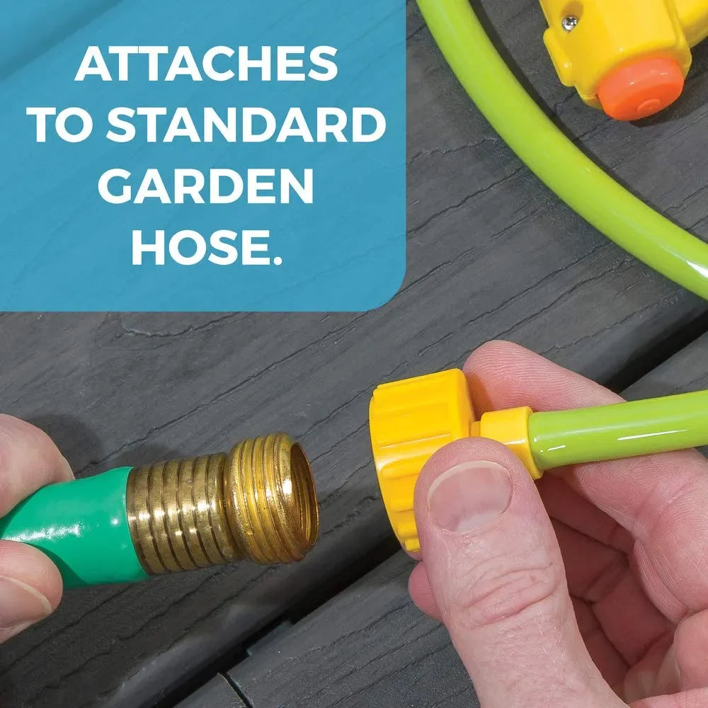 • Includes water blaster that connects to any standard garden hose