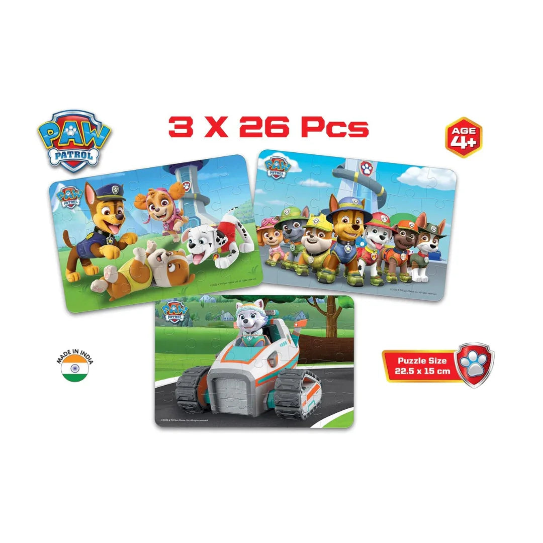 Three Engaging Puzzles in One Set: Includes 26 colorful pieces across three unique Paw Patrol-themed puzzles, keeping kids entertained and challenged.