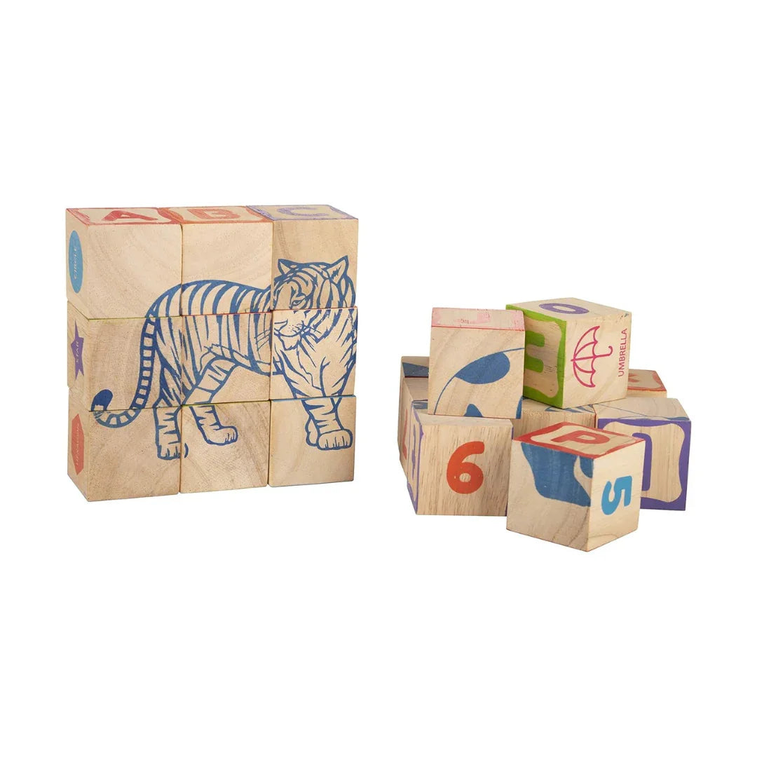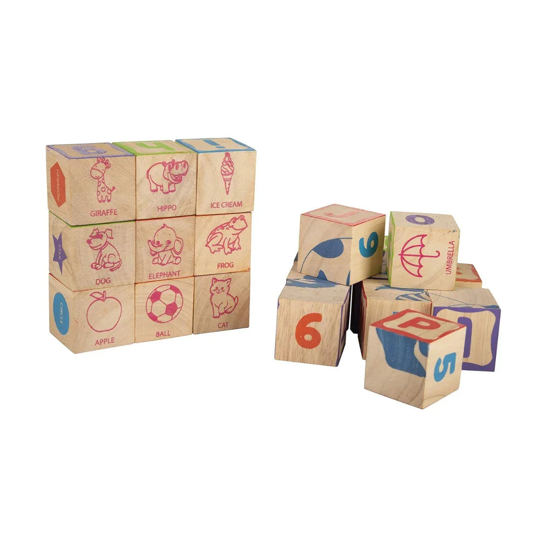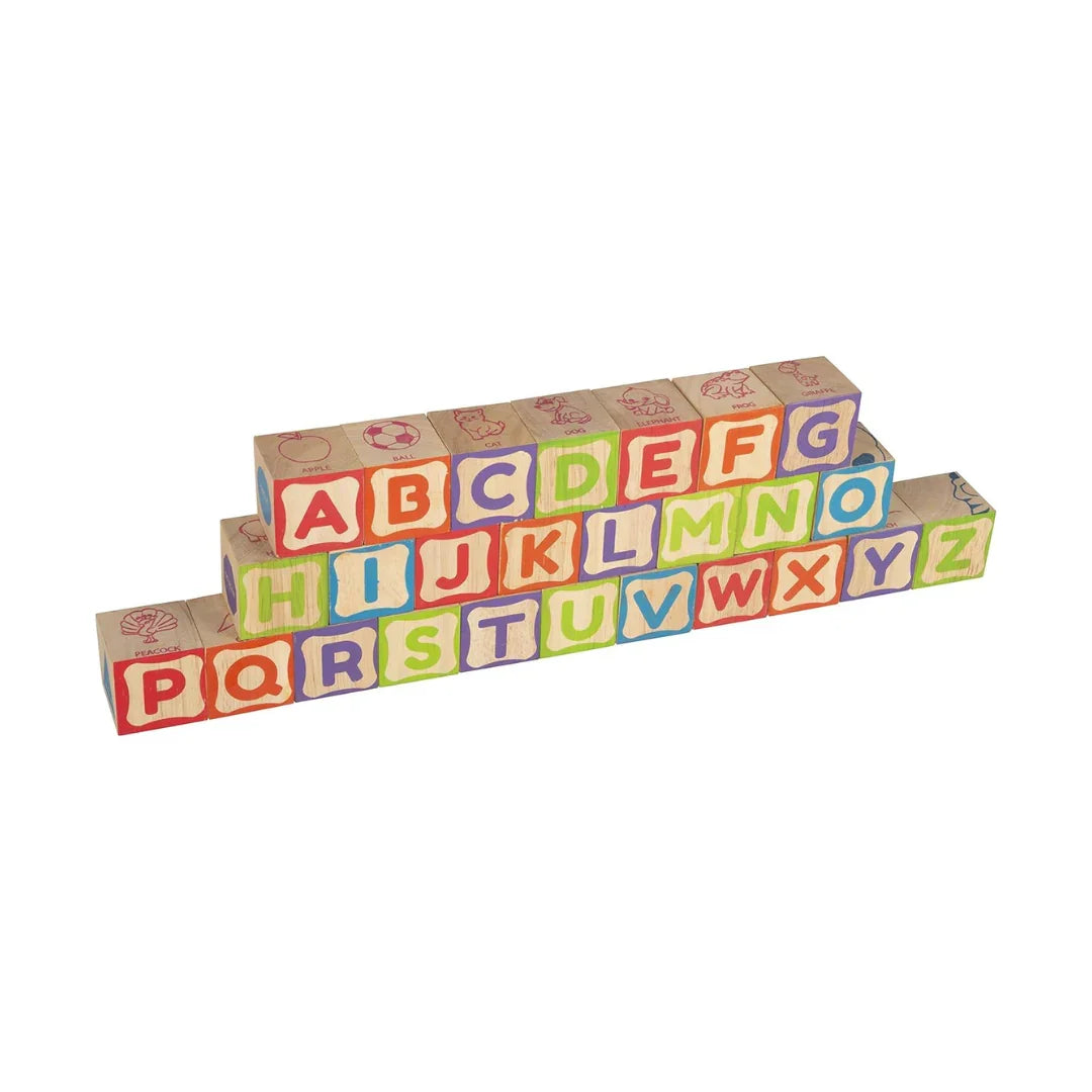 Includes 26 sturdy wooden cubes designed for interactive early learning