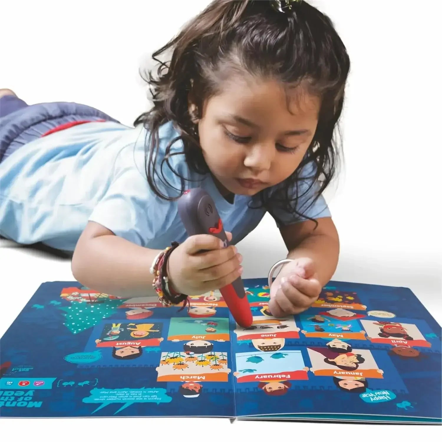 This premium educational set includes 12 deeply informative SmartBooks and a Smart Talking Pen that brings every page to life. Children can simply tap the pen on any image, letter, or word to hear sounds, pronunciations, explanations, and even songs—transforming reading time into a fully immersive experience. The set also includes 280+ re-recordable stickers, making learning more personal and interactive as kids can record their own voices or responses for repeated playback.