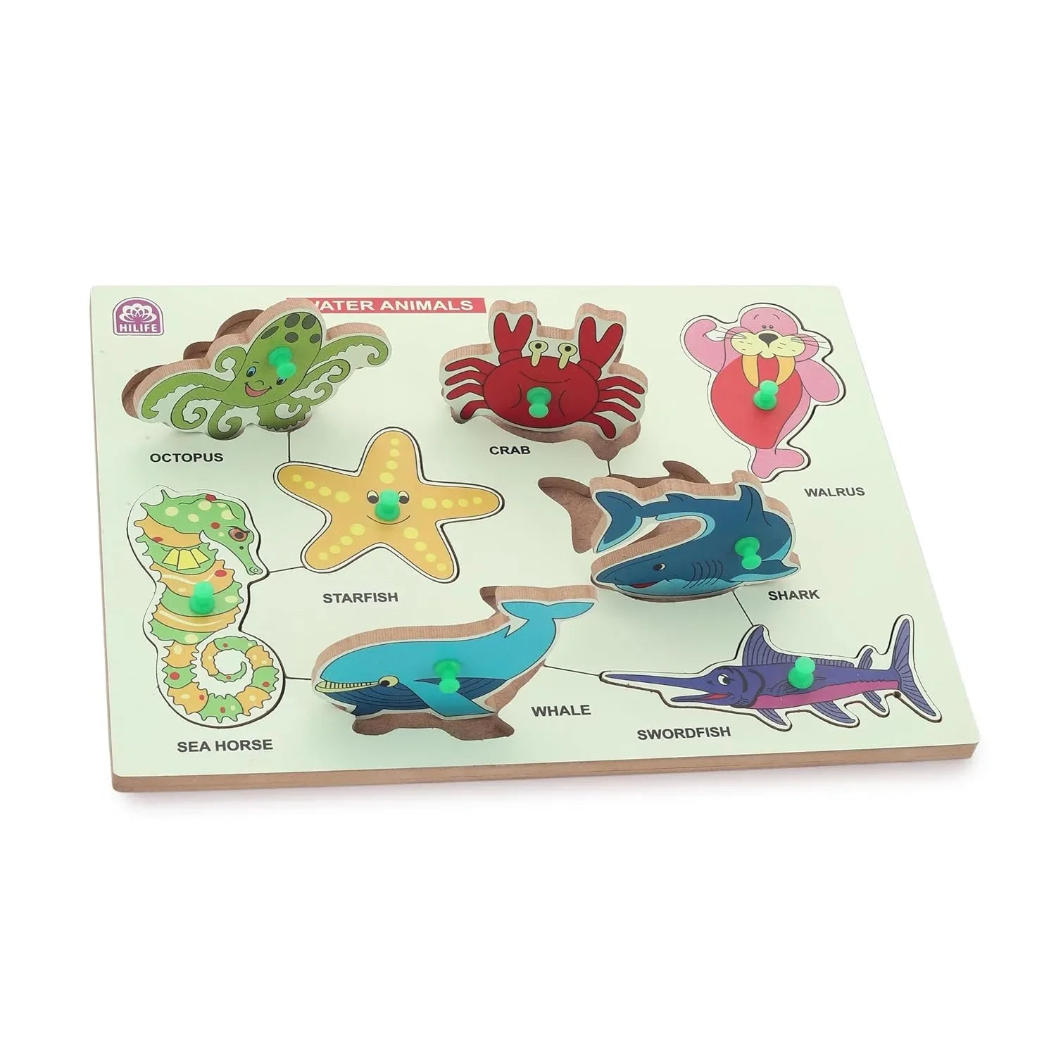 Introduce your child to the enchanting world beneath the waves with the HiLife Educational Water Animals Puzzle Board – Gold Series, a thoughtfully designed wooden peg puzzle that combines education with entertainment. Created to stimulate the minds of toddlers and preschoolers, this puzzle features a collection of popular aquatic animals—from dolphins and turtles to whales and octopuses—carefully illustrated and cut into individual puzzle pieces. It’s more than just a toy—it’s a foundation for early learning that blends visual recognition, language development, and fine motor skills into a single engaging experience.
