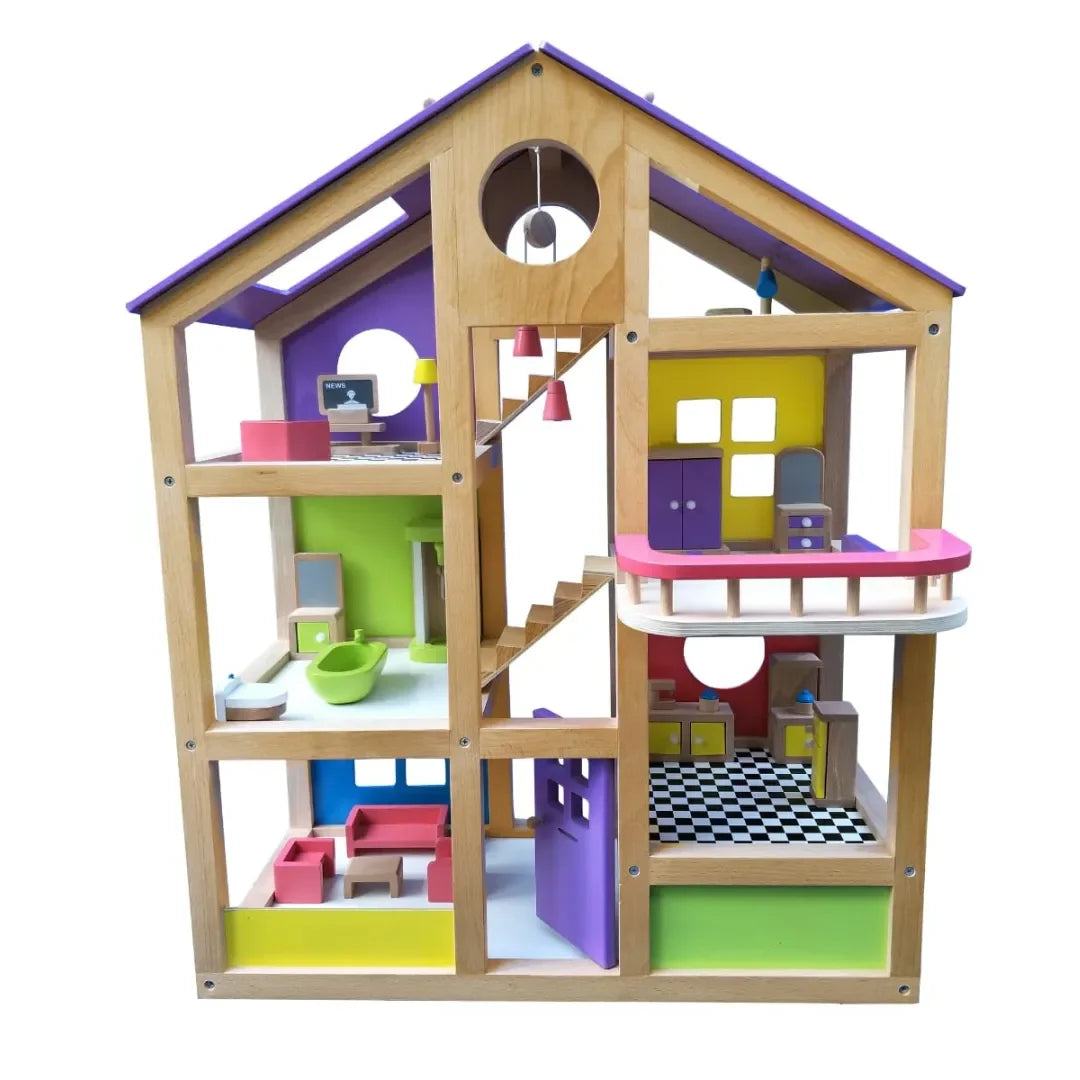 Hilife Fully Furnished Doll House for Kids | Wooden Pretend Playhouse with Rooms, Furniture & Accessories | Imaginative Toy for 3 Years and Above