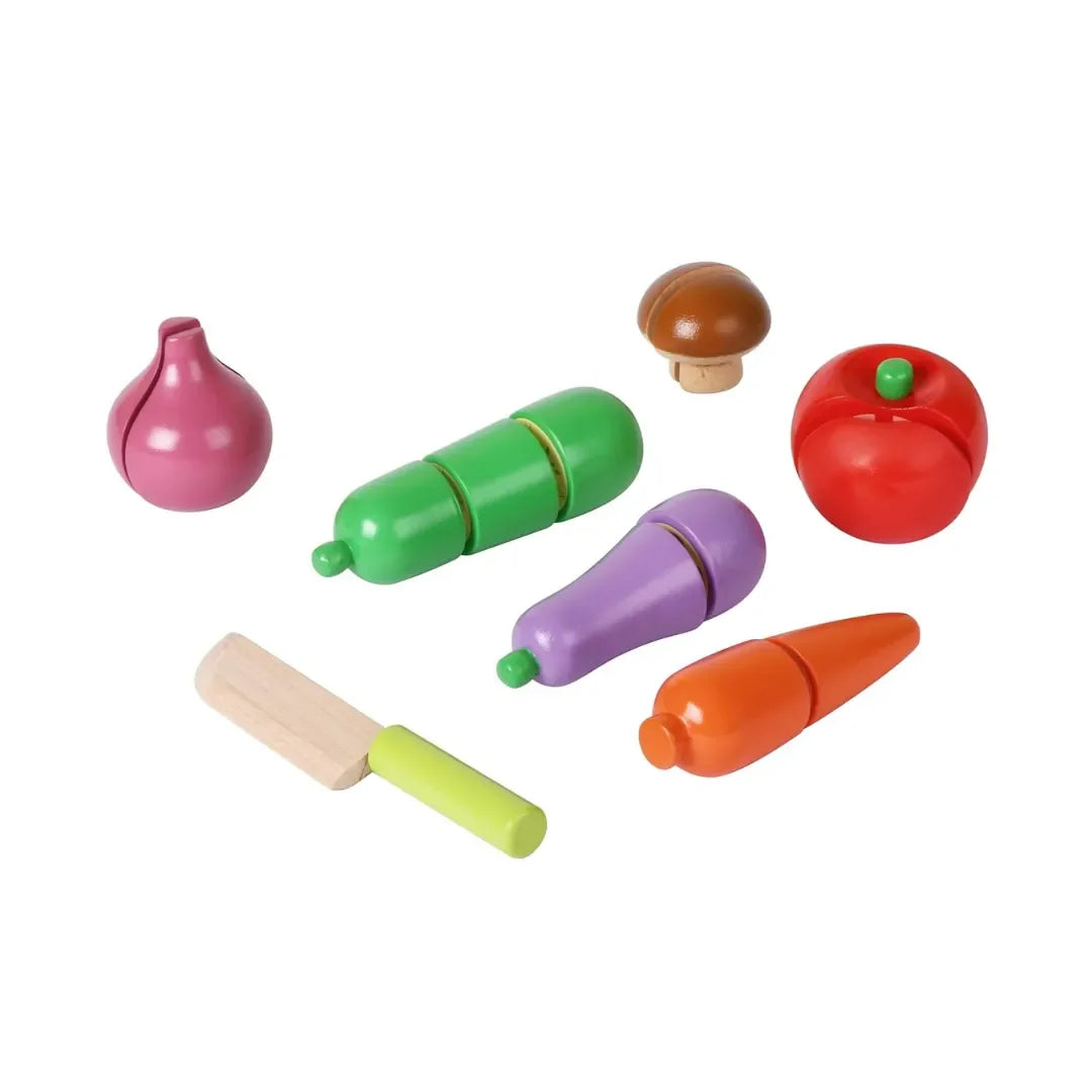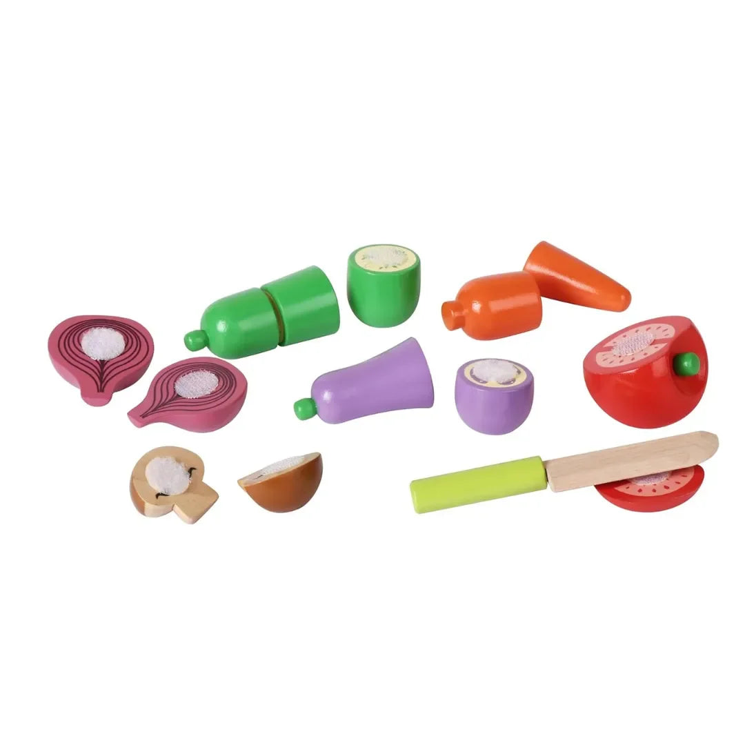 HILIFE Wooden Play Food Set – Sliceable Vegetables and Fruits with Wooden Knife – Montessori Pretend Kitchen Toy for Kids – Educational Cutting Practice Toy – Made from Safe & Durable Wood