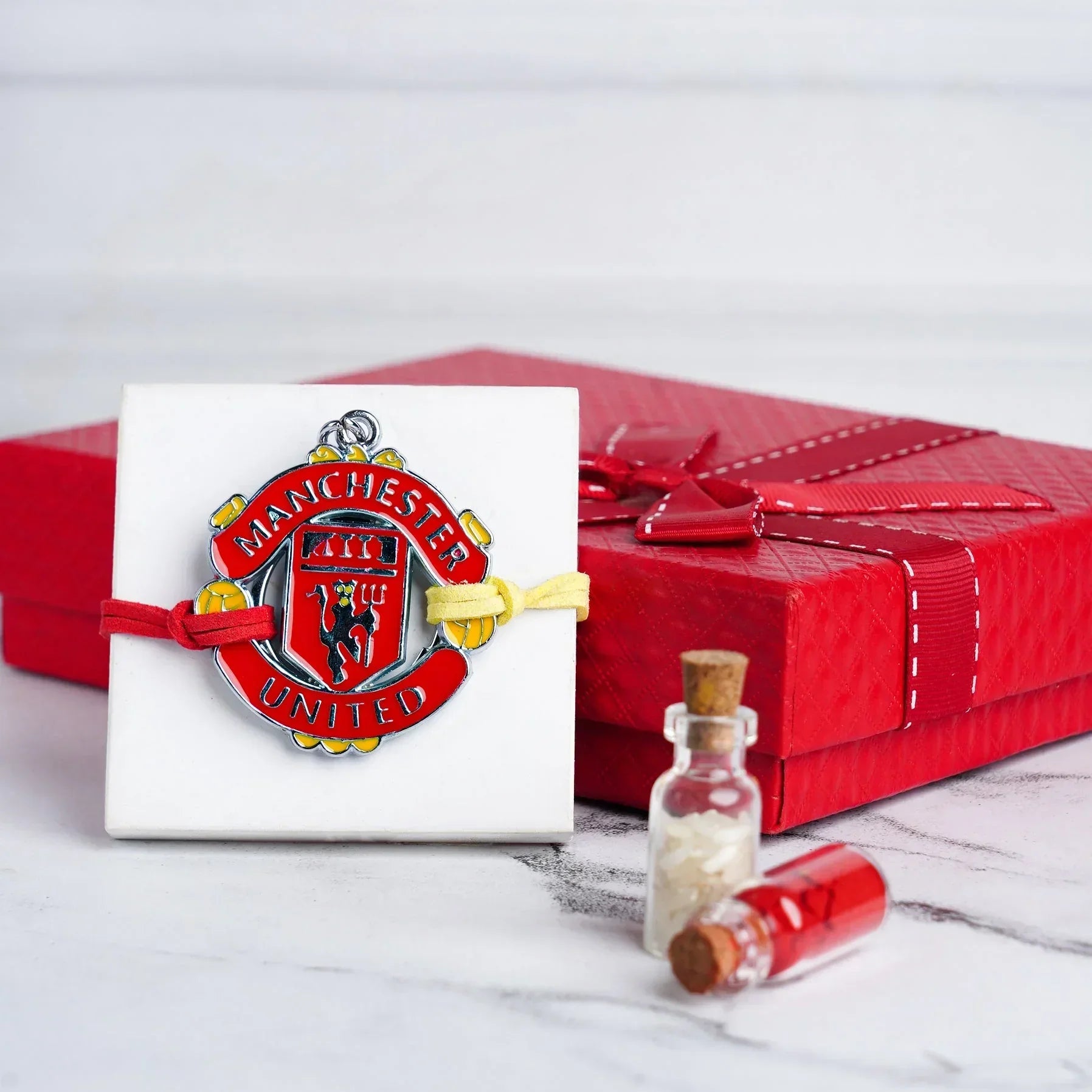 Celebrate Raksha Bandhan with football passion! The ilearnngrow Manchester Rakhi with Keyring is the perfect combo for young Manchester football club fans who want to show their team pride on this special day.