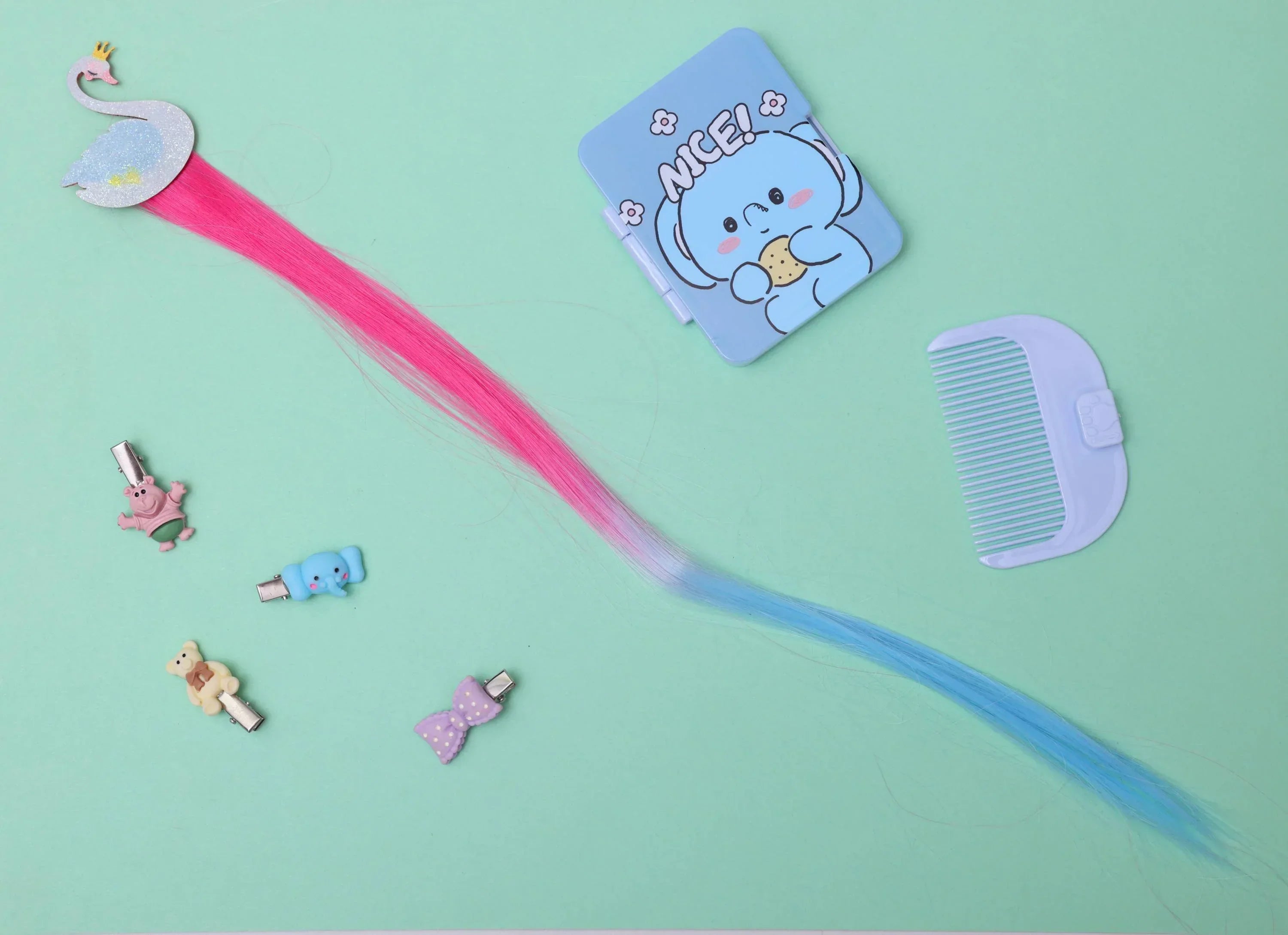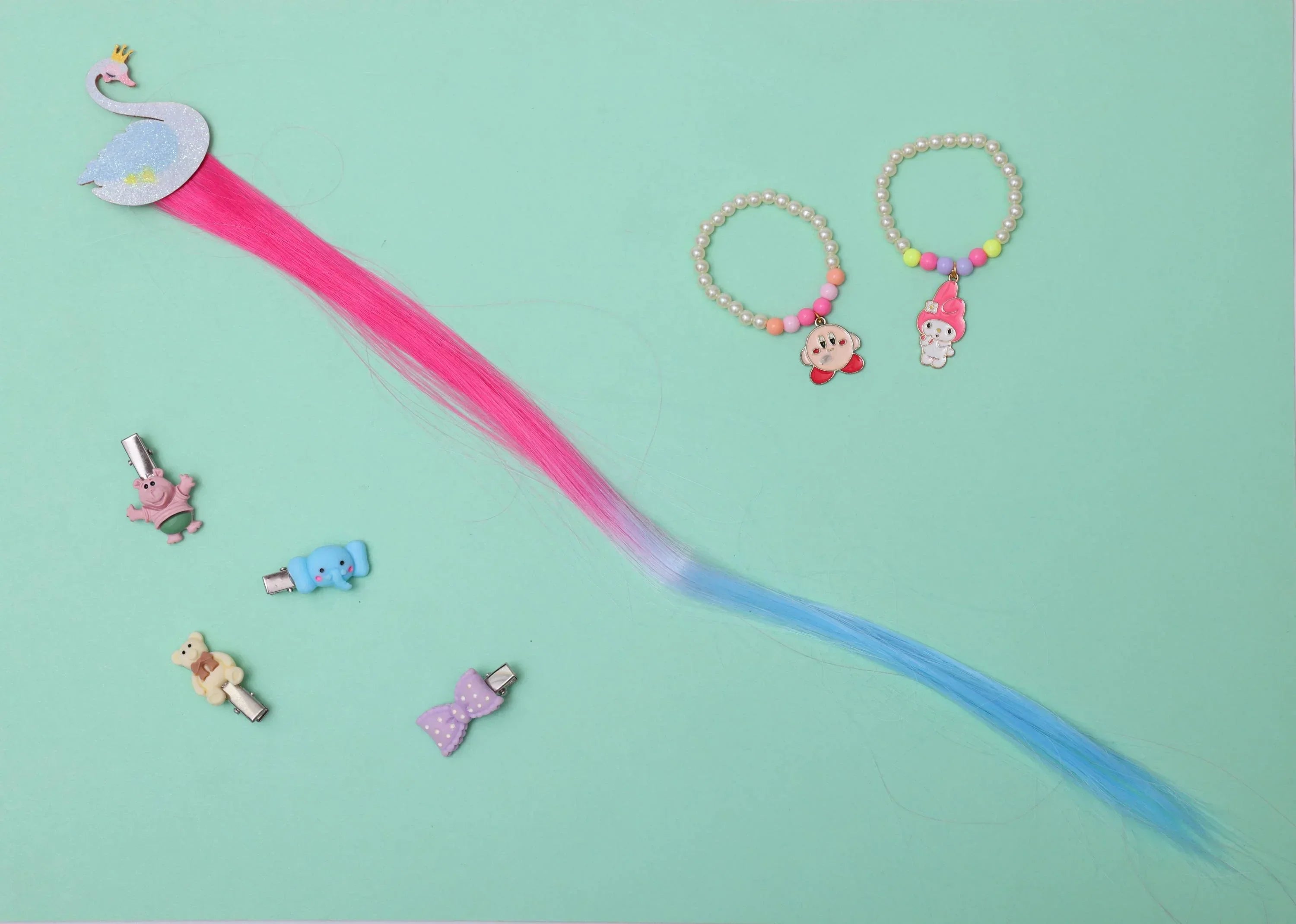 ilearnngrow offers colorful and elegant synthetic hair extensions with beautiful Cartoon Design hair clip to your little girl. It is attached with an Alligator hair clip, which you can easily attach to her hair. If you or your child enjoys having fun, these ultra-neon nylon hair extension clips are ideal. These hair clips are likely to catch anyone's attention. The material is a silky soft nylon that feels excellent at gatherings. Celebrate by experimenting with different hairstyles. A fun party favor for any occasion and a wonderful carnival award. A popular party favor and an excellent addition to party and beauty supplies. The vivid colors make the hairpieces an excellent choice. Color highlighter for small children